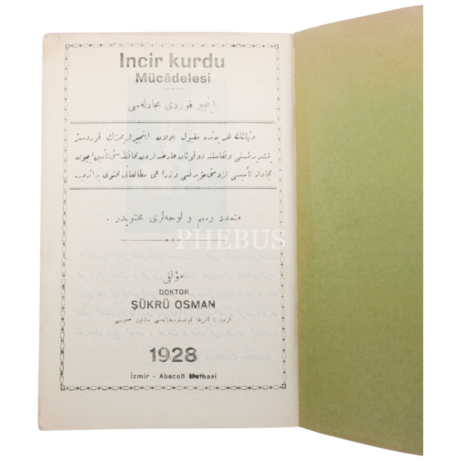 İNCİR KURDU MÜCADELESİ, Doktor Şükrü Osman, 1928, Abocoli Matbaası, İzmir, 150 sayfa, 12x17 cm...