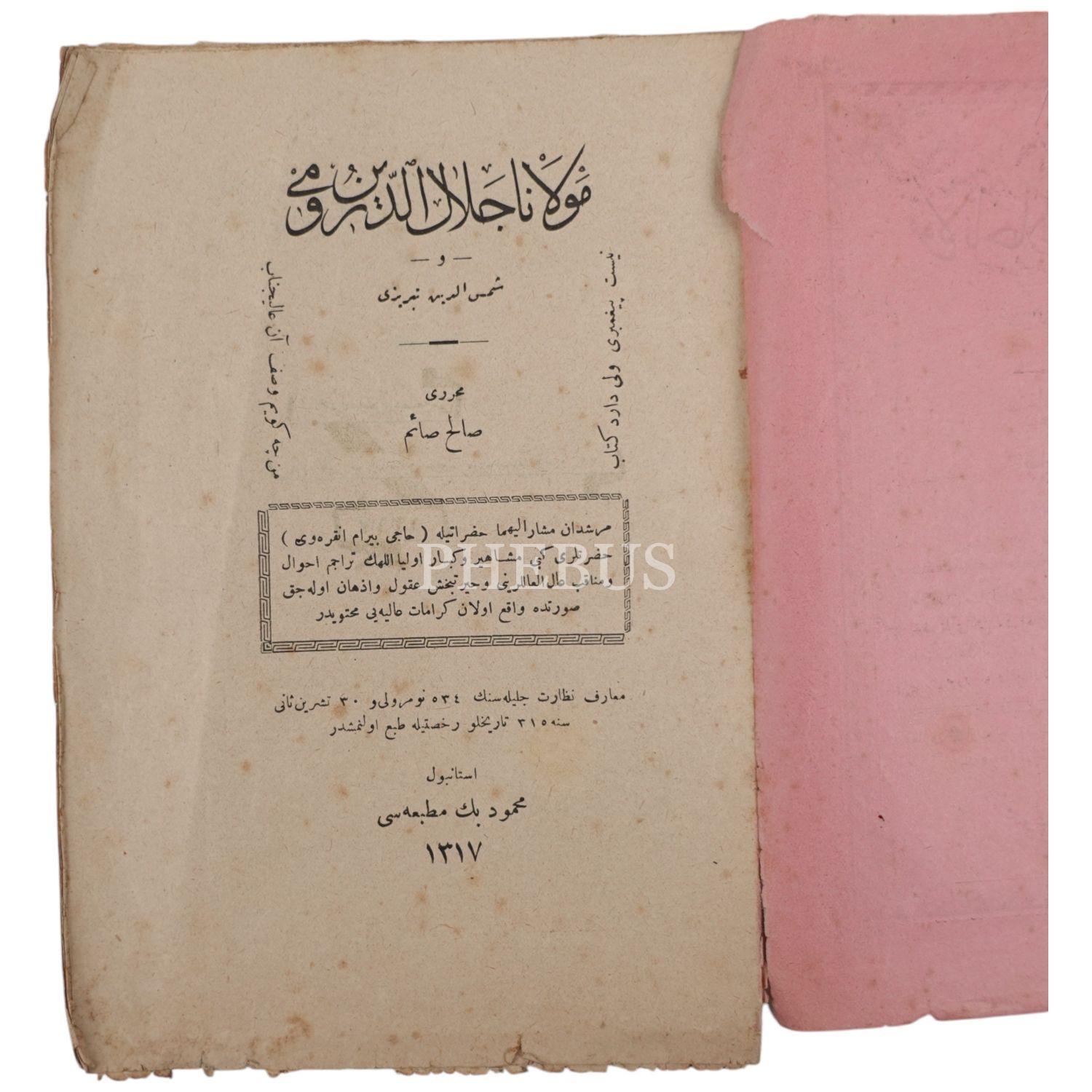 MEVLANA CELALEDDİN-İ RÛMÎ VE ŞEMSEDDİN-İ TEBRİZÎ, Salih Saim,1317,Mahmud Bey Matbaası, 22 sayfa,15x21...