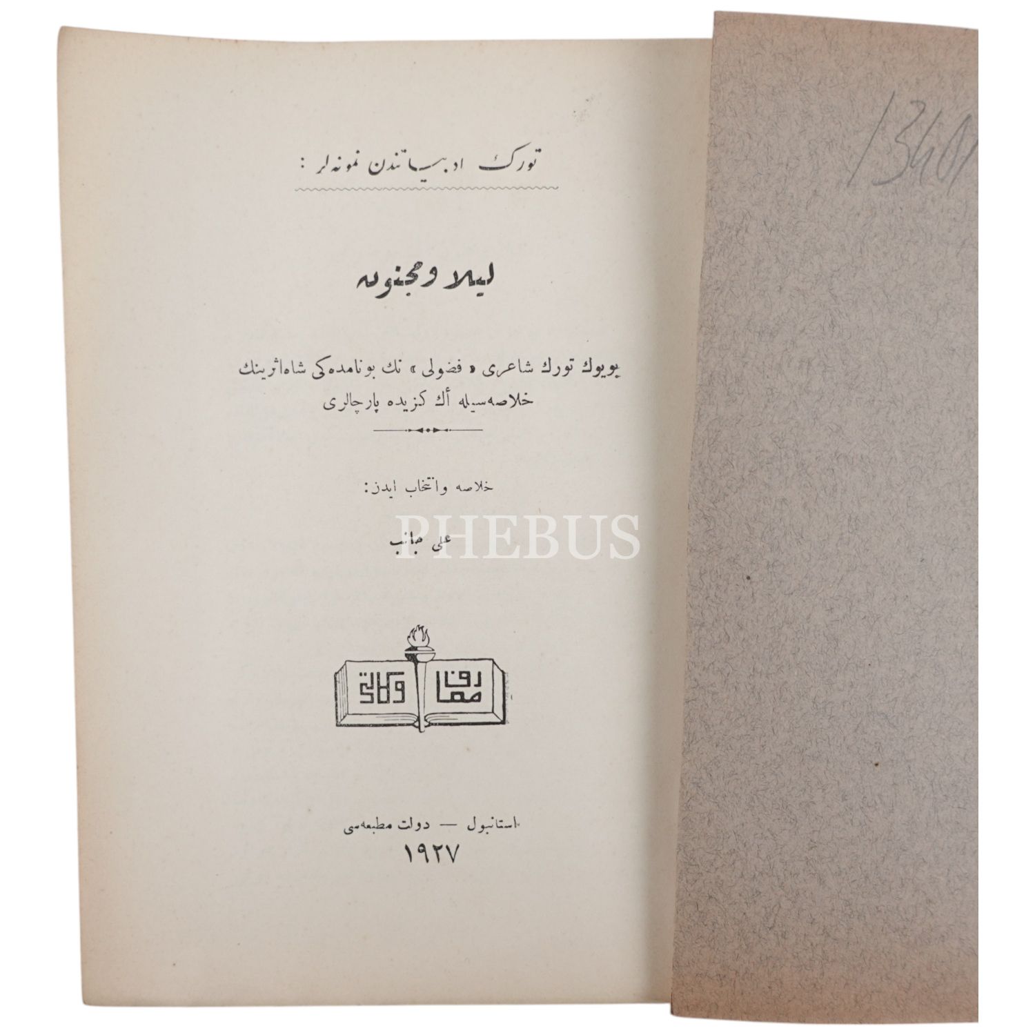 Fuzulî´nin ölümsüz eseri Leyla ve Mecnun´un, dönemin Maarif müfettişi Ali Canip Yöntem tarafından sadeleştirilip Devlet Matbaasından çıkan baskısı...