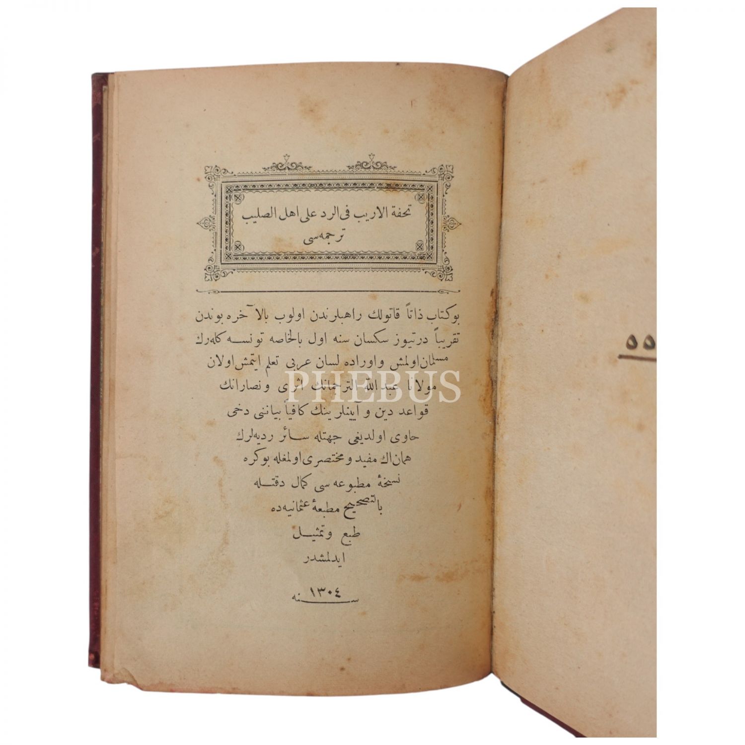 TUHFETÜL-ERİB FİR-REDDİ ALA EHLİS SALİB TERCÜMESİ, Hacı Mehmed Zihnî, 1304, Matbaa-i Osmaniyye, 131 sayfa,12x18cm...