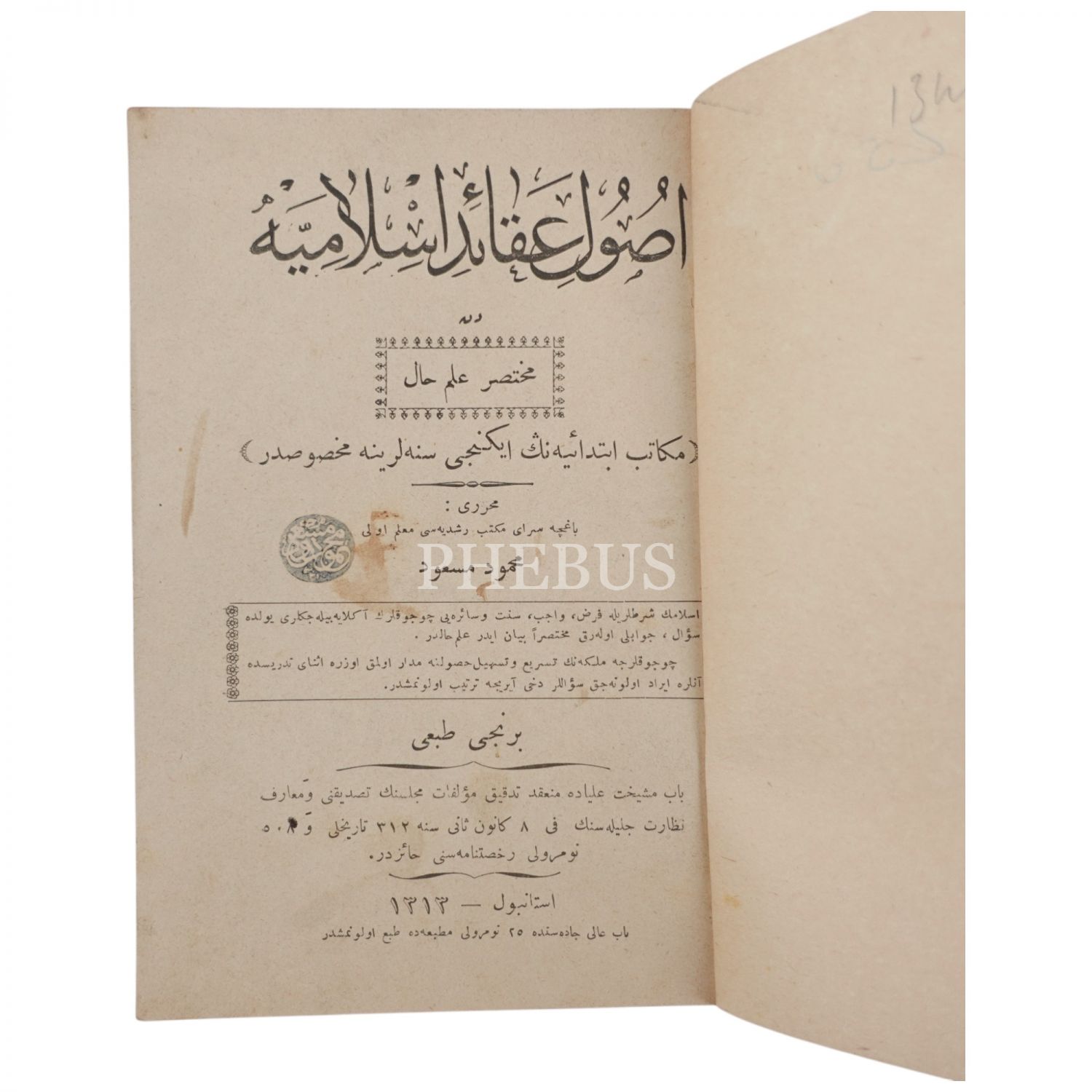 USUL-U AKAİDİL İSLAMİYYE (MUHTASAR İLMİHAL), Mahmud Müsavad , 1313, Babı Ali Caddesi 25 numaralı Matbaa, 80 sayfa,11x17cm...