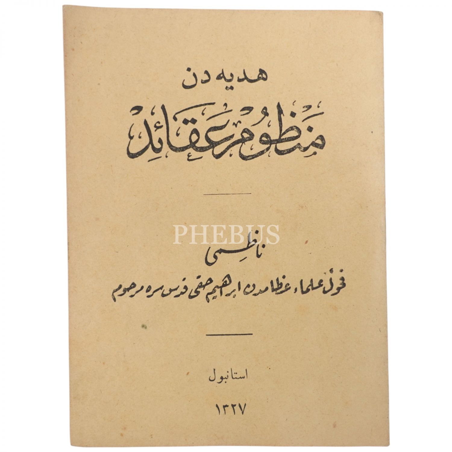 HİDAYEDEN MANZUM AKAİD, İbrahim Hakkı, Şirket-i Mürettibiye Matbaası, İstanbul, 1327,15 sayfa, 12x16 cm