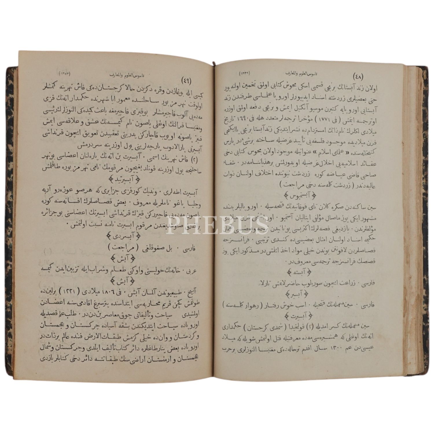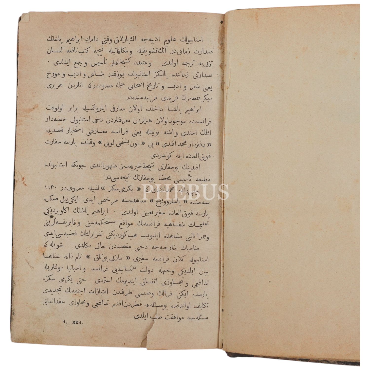 "Sarıklı Devrimci" Ali Suavi´nin Osmanlı´nın ilk diplomatı Yirmisekiz Mehmed Çelebi´nin Paris Sefaretnamesinin haşiyeli neşri, İbn Miskeveyh´in Eflatun çevirisine yaptığı düzeltmeleri içeren Lugaz ve küçük ansiklopedi denemesi olan Kamusul Ulum tek ciltte. * Katlanabilir bir levha yırtılmıştır. 77 ve 78. sayfa ortasından yırtılmıştır.