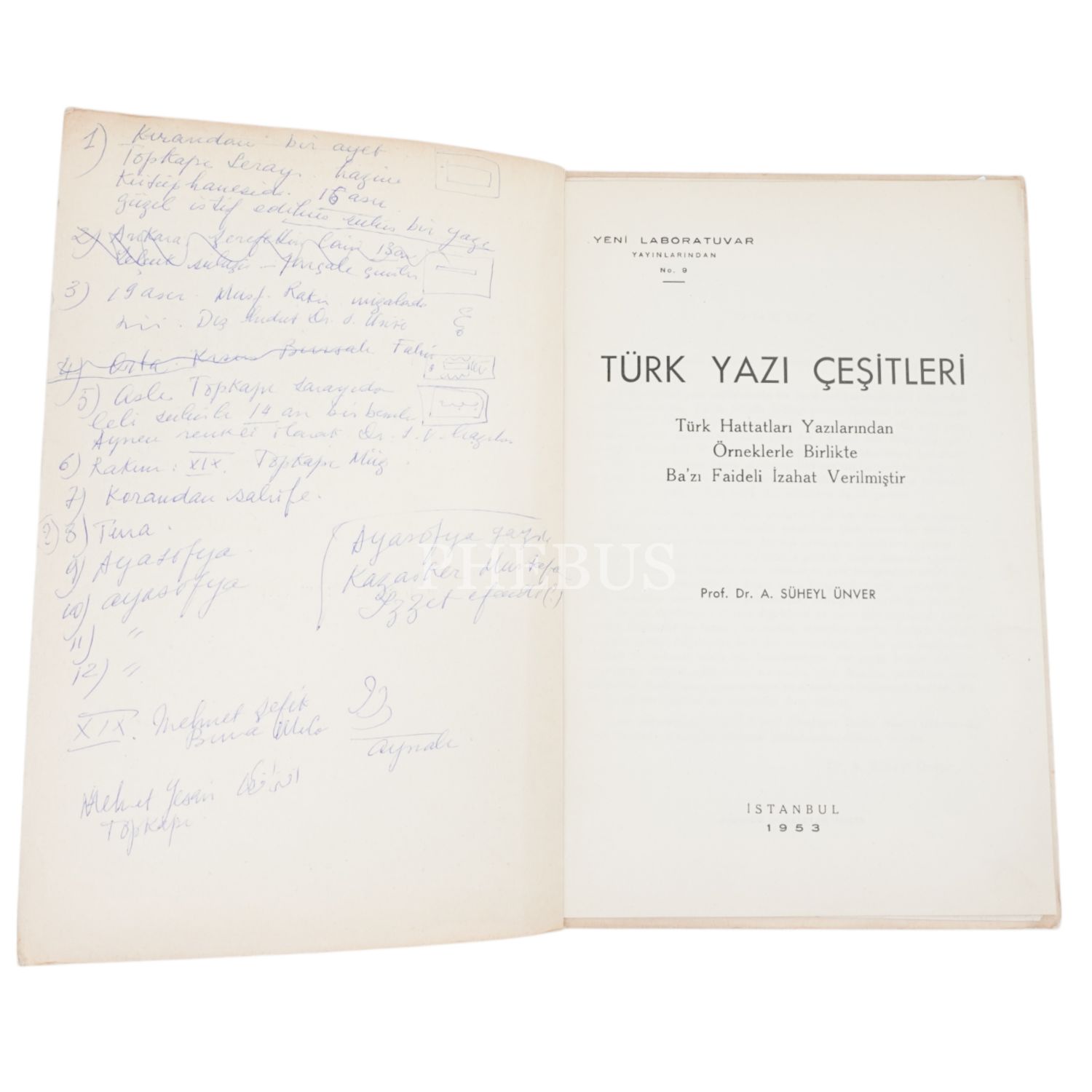 TÜRK YAZI ÇEŞİTLERİ VE FAİDELİ BA´ZI BİLGİLER, Süheyl Ünver, 1953, Yeni Laboratuvar Yayınları, 44 sayfa, 25x17 cm...