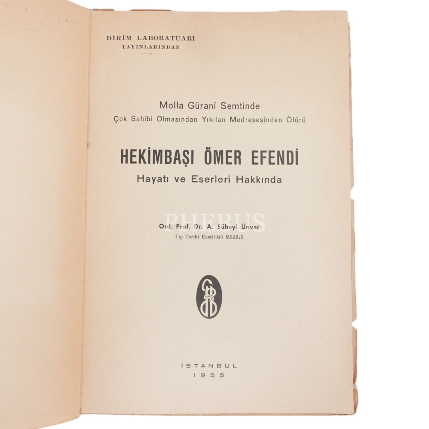 HEKİMBAŞI ÖMER EFENDİ, Süheyl Ünver, 1955, 23 sayfa, 25x17 cm...