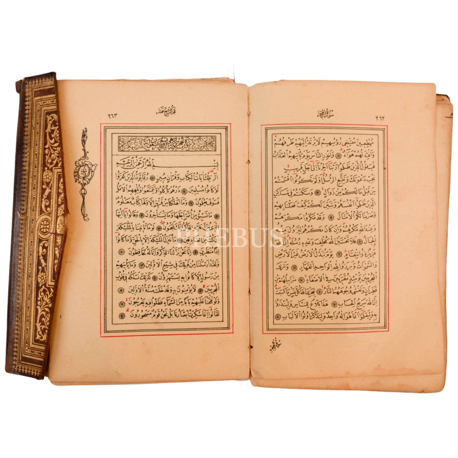 KURAN-I KERİM, Musıki-i Hümayun imamı Hacı Rıza Efendi hattı baskı, miklepli deri, Hicrî 1327, Matbaa-i Osmaniye, 612 sayfa, 17x11 cm...