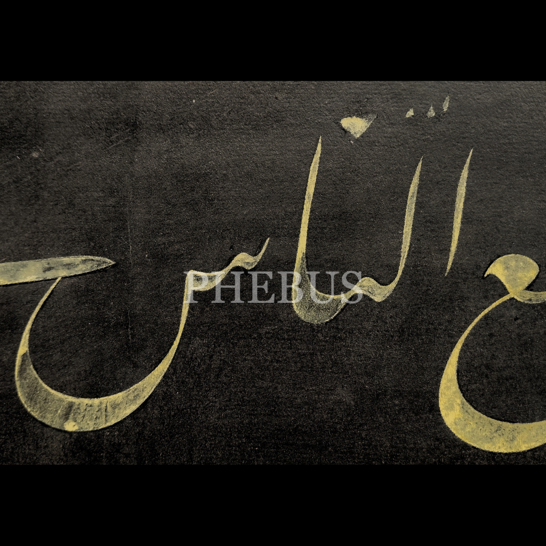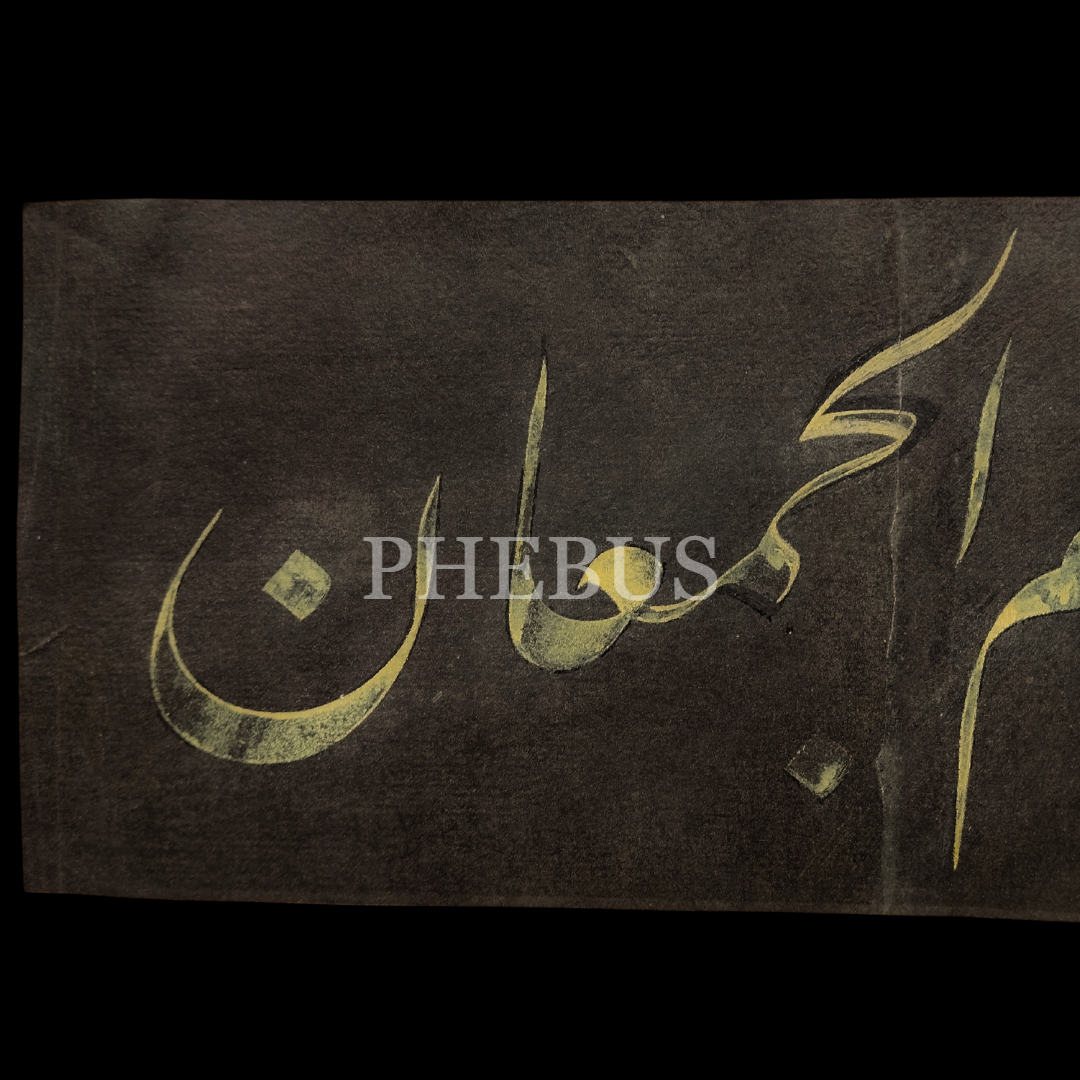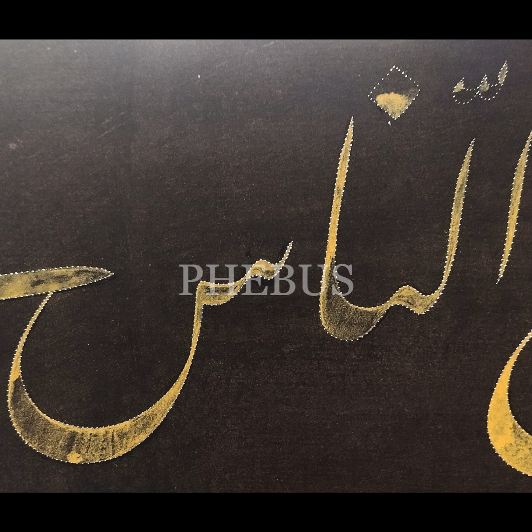 Celi talik yazı, zırnık mürekkebi ile yazılmış ve iğnelenmiş, 64x13 cm...