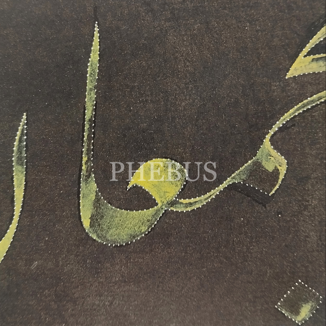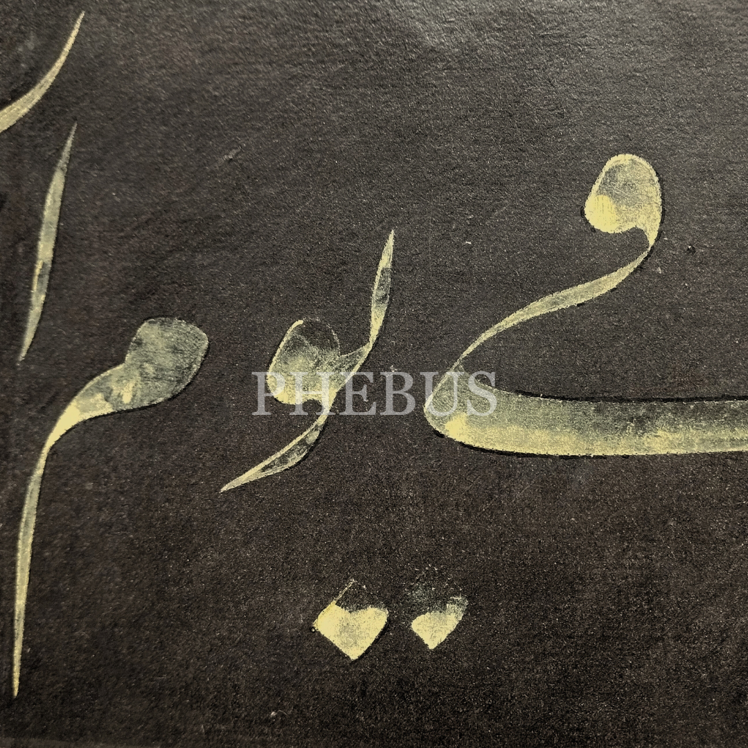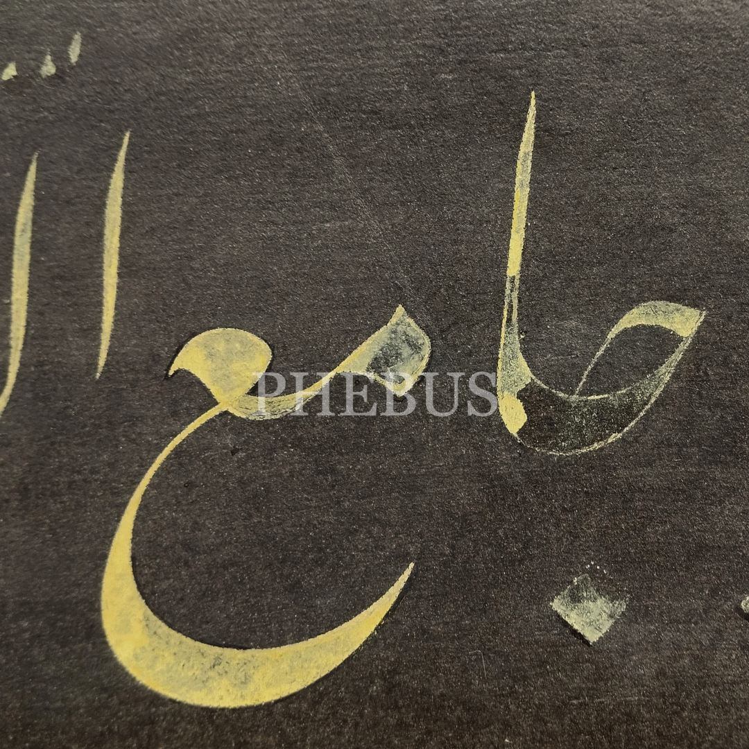 Celi talik yazı, zırnık mürekkebi ile yazılmış ve iğnelenmiş, 64x13 cm...