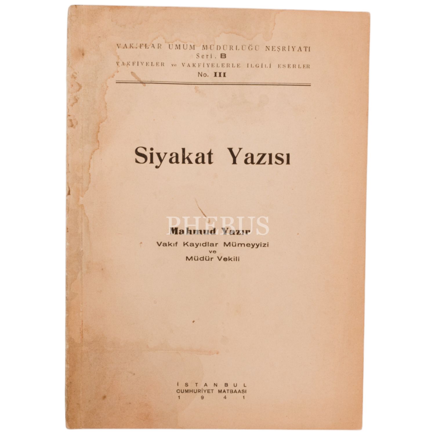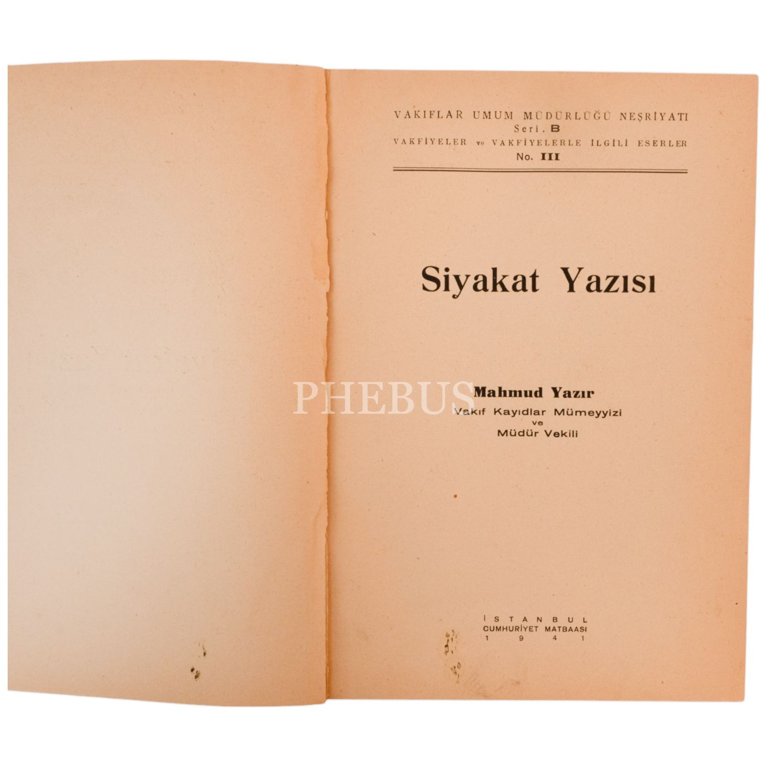 SİYAKAT YAZISI, Mahmud Yazır, 1941, 72 sayfa, 20x14 cm...