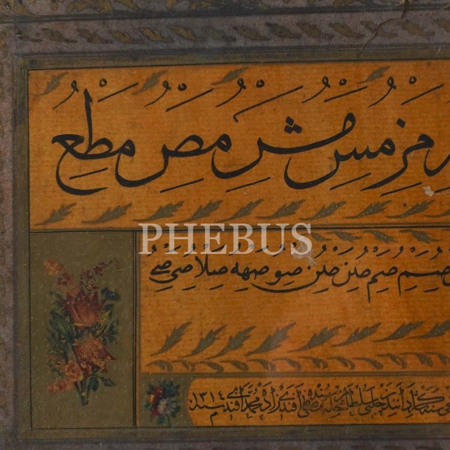 Mustafa Efendizade Mehmed ketebeli nesih-sülüs hurufat meşki, tezhipli ve çerçeve ölçü, 35x24 cm...