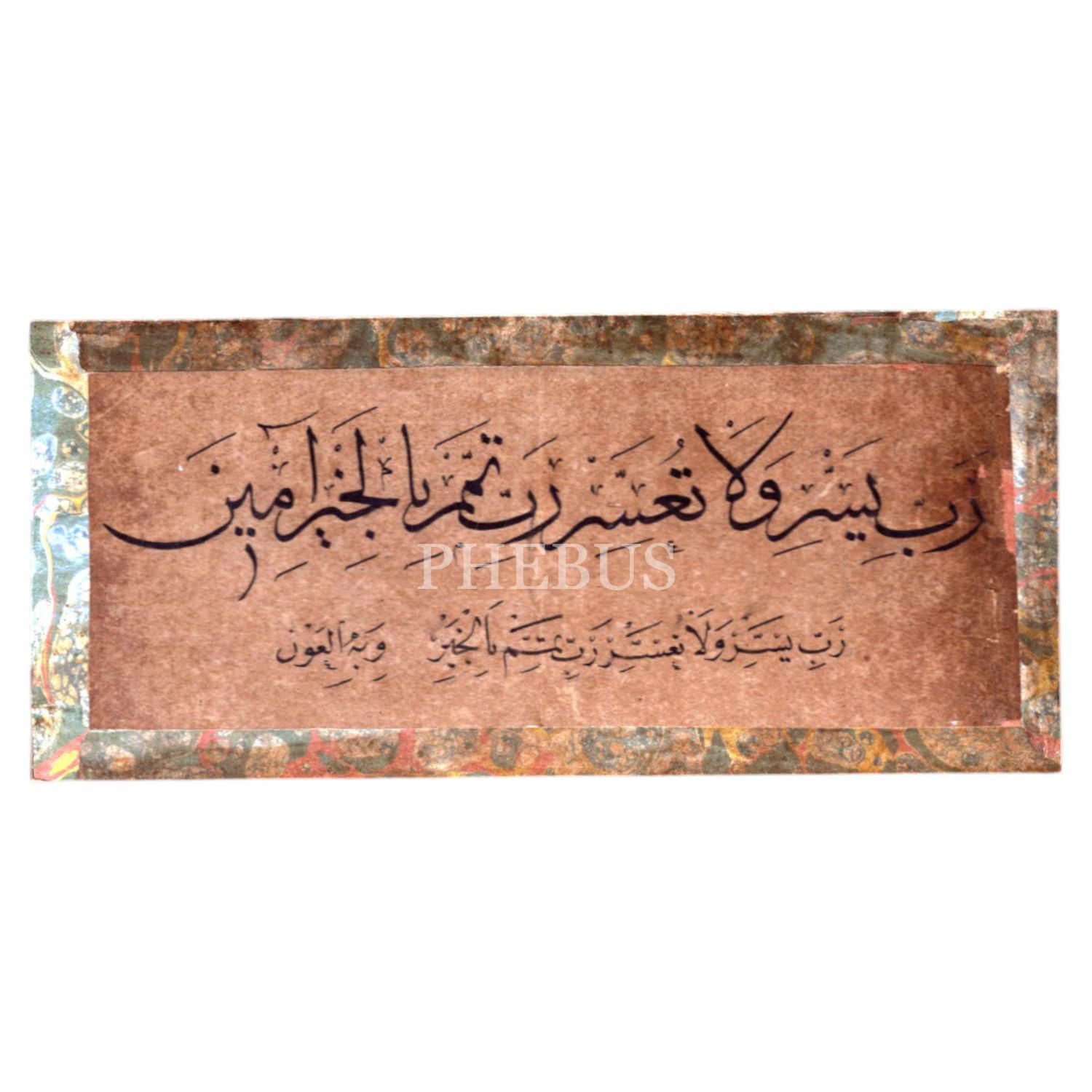 Sülüs ve nesih Rabbi Yessir duası, pervazı ebrulu, 20x9 cm...