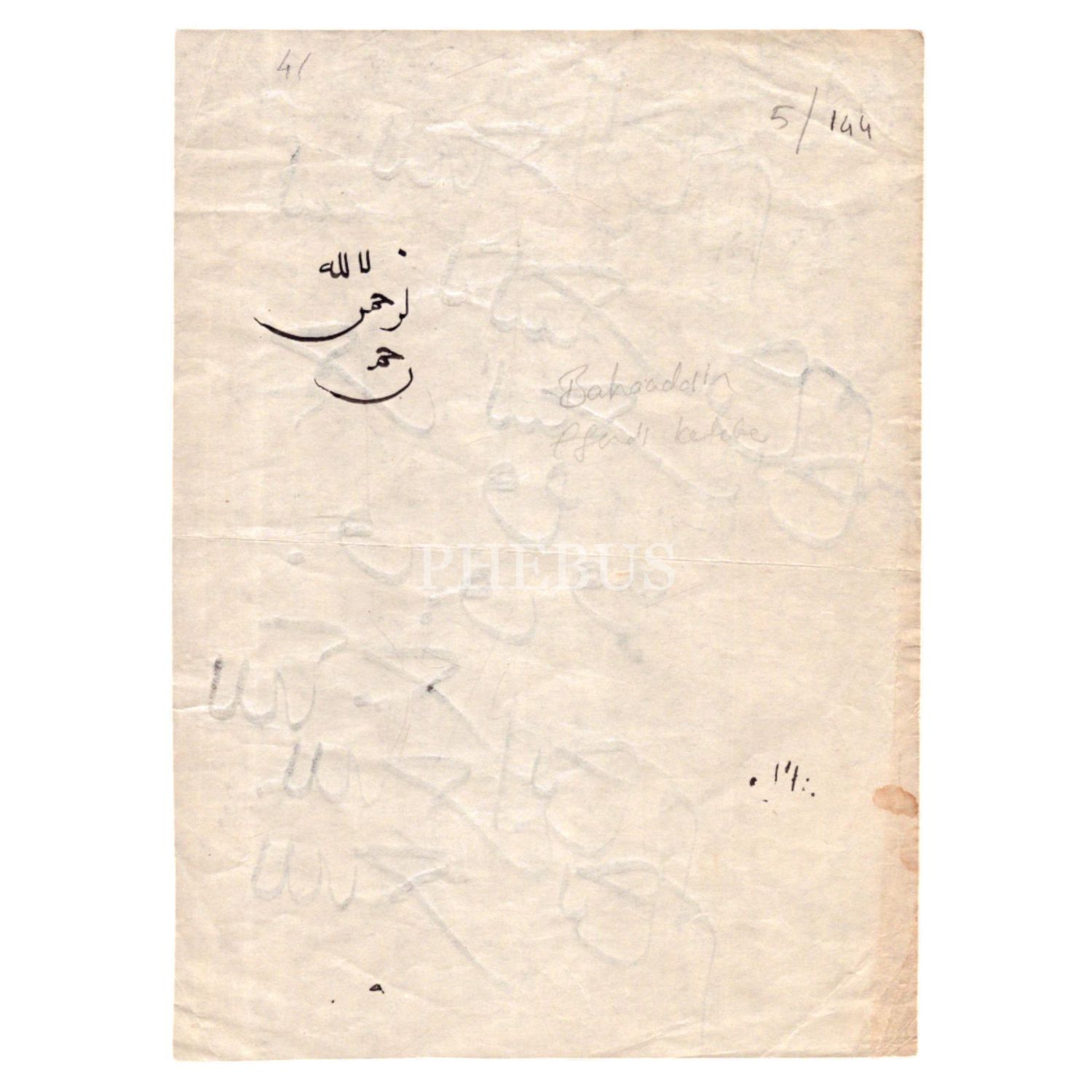 Bahaeddin ketebeli sülüs besmele meşki, 15x21 cm...