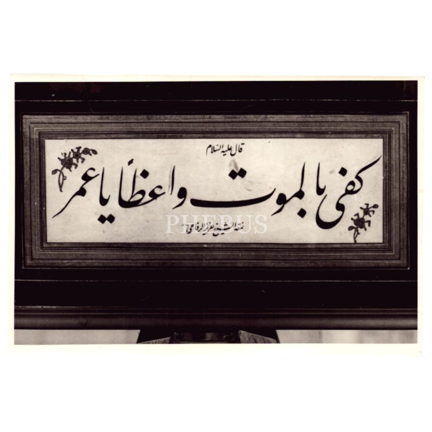 Anlamı: "(Hazreti Peygamber) Aleyhisselam dedi ki, nasihatçi olarak ölüm yeter yâ Ömer!" - arkasında Arapça yazıyla "Aram Mecmuası, İstanbul" yazmaktadır.