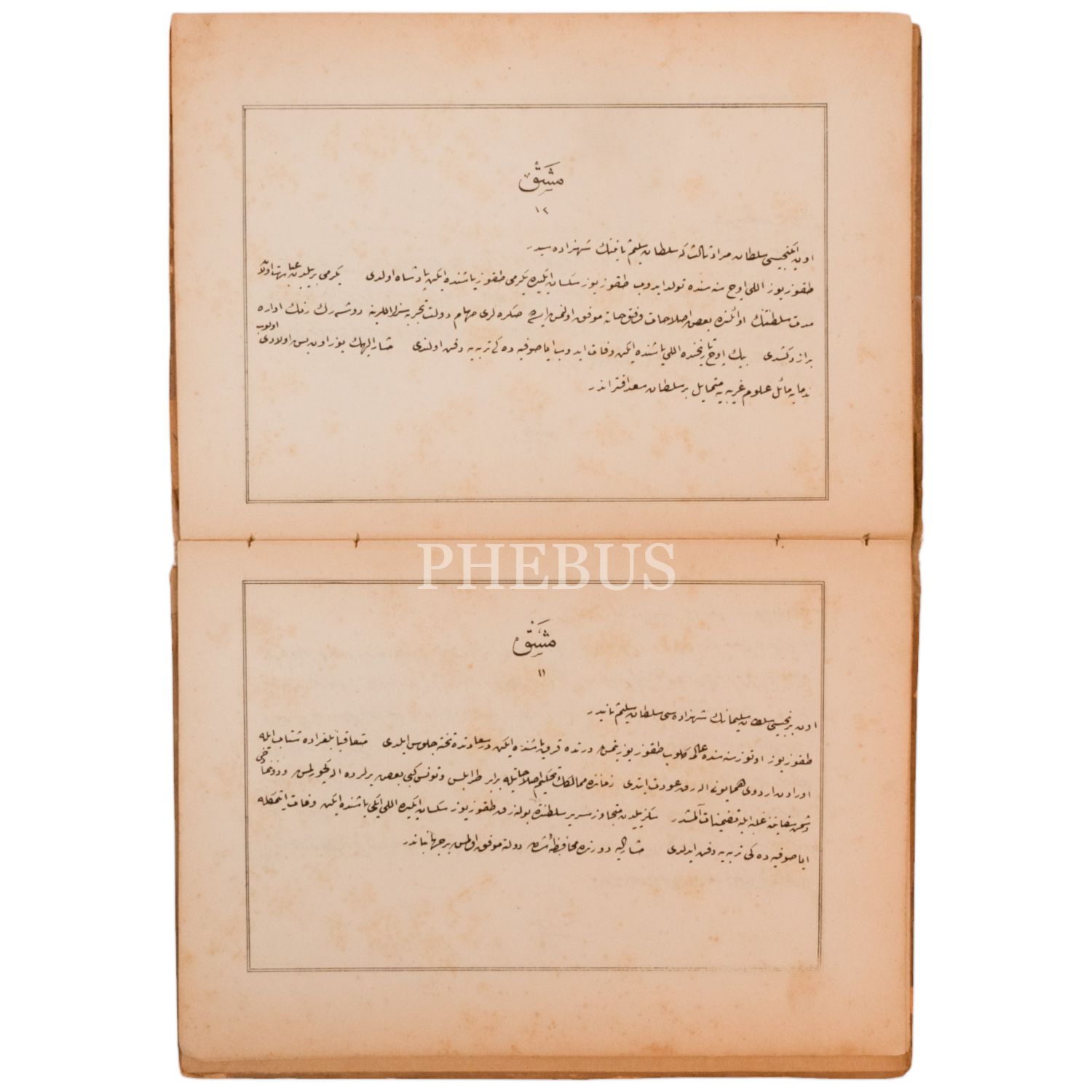 Rüşdiye mektebi (ortaokul) rika hattı ile güzel yazı alıştırma kitabı. Metinler Ertuğrul Gazi´den itibaren Osmanlı padişahlarını anlatmaktadır. Meşhur yazar, bürokrat ve çevirmen Halet Efendi´nin eseridir.