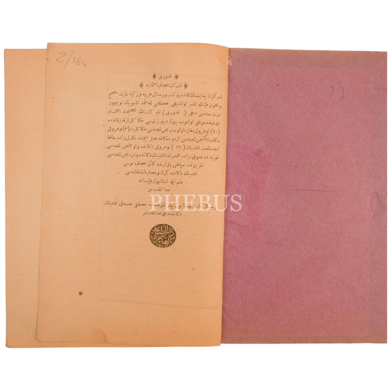 KUDURİ, Şirket-i Sahafiye-i Osmaniye, 1304, 144 sayfa, 24x16 cm...
