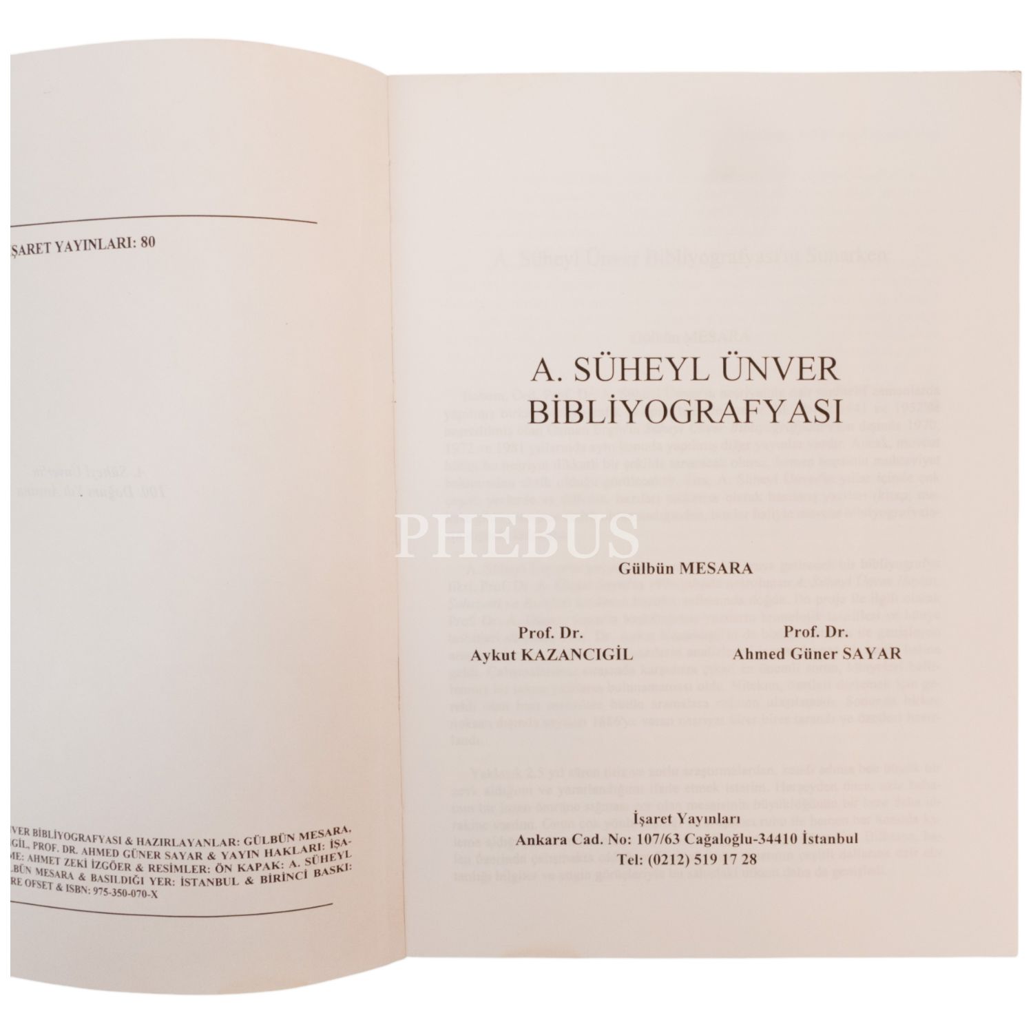 A. SÜHEYL ÜNVER BİBLİYOGRAFYASI, 1998, İşaret Yayınları, 471 sayfa, 23x17 cm...