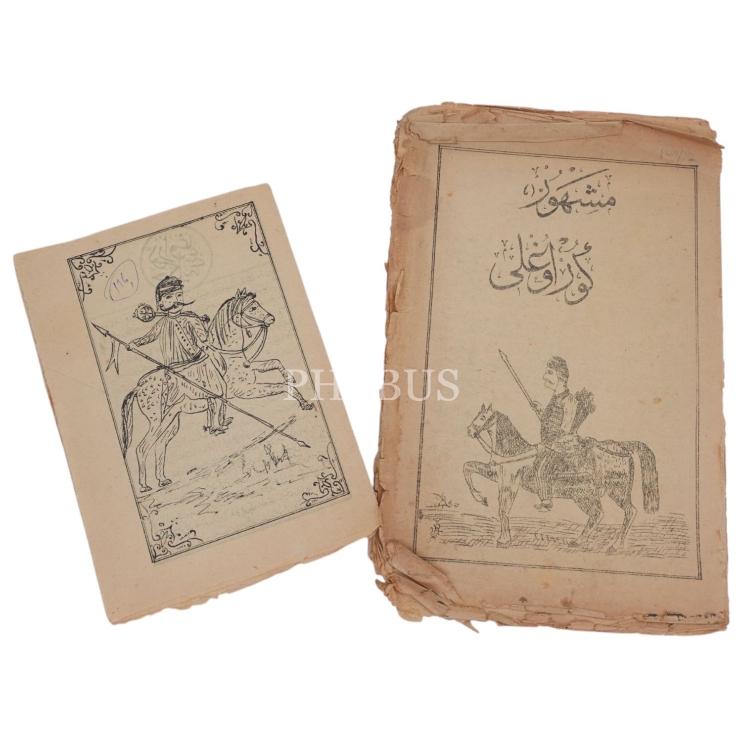 İki adet farklı boylarda taşbaskı Osmanlı Türkçesi Köroğlu hikayesi...