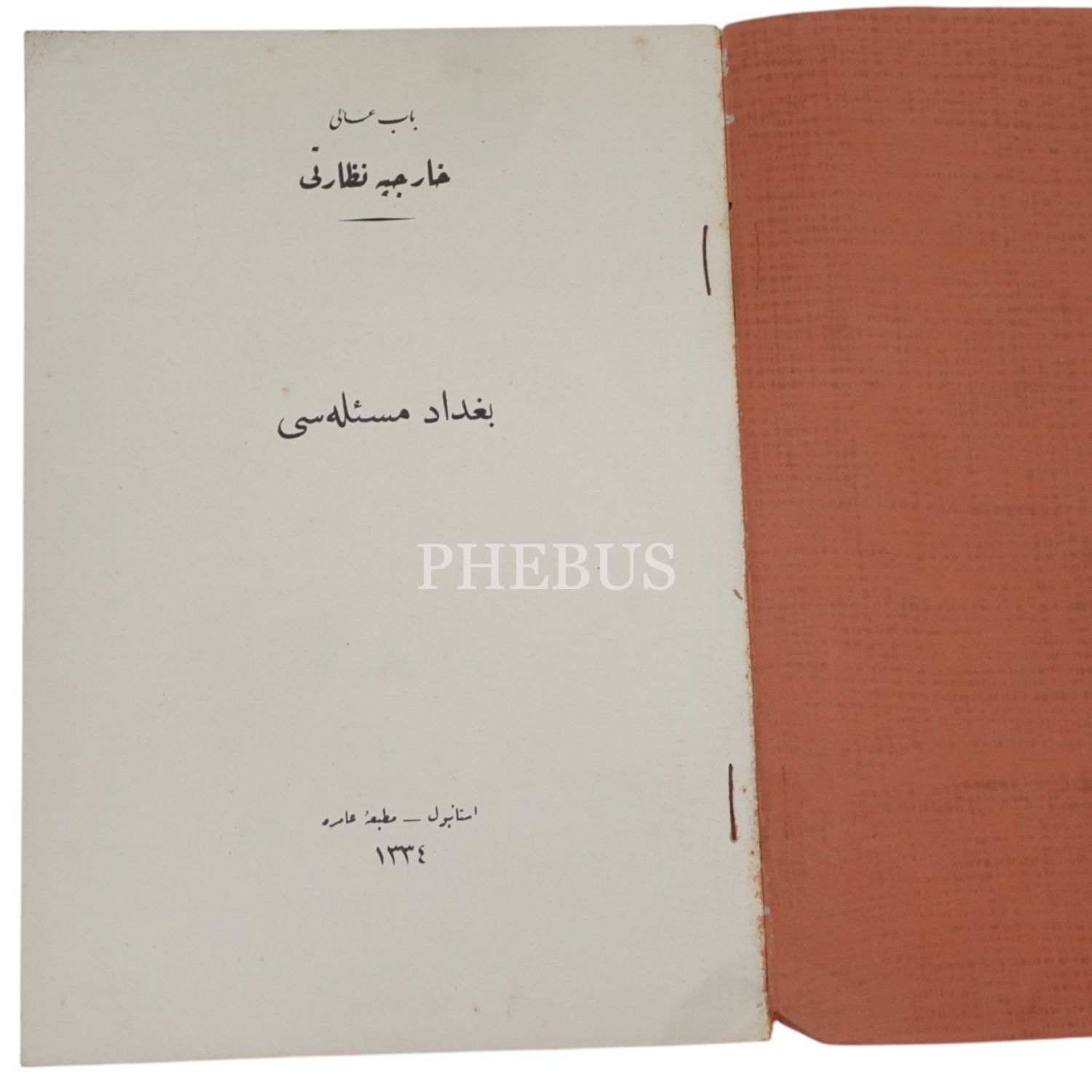BAĞDAD MESELESİ, Bâb-ı Âli Hariciye Nezareti, 1334, Matbaayı Amire, 53 sayfa, 16x23cm...