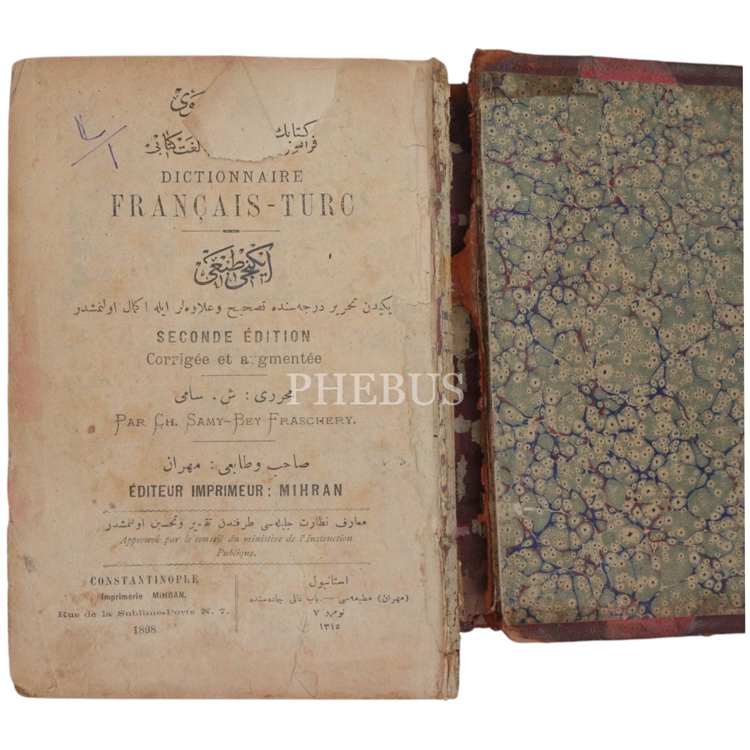 Şemseddin Sami´nin Osmanlı Türkçesinden Fransızcaya sözlüğü... *Osmanlı tuğralı cildi ile metin arasında kopmalar bulunmaktadır.