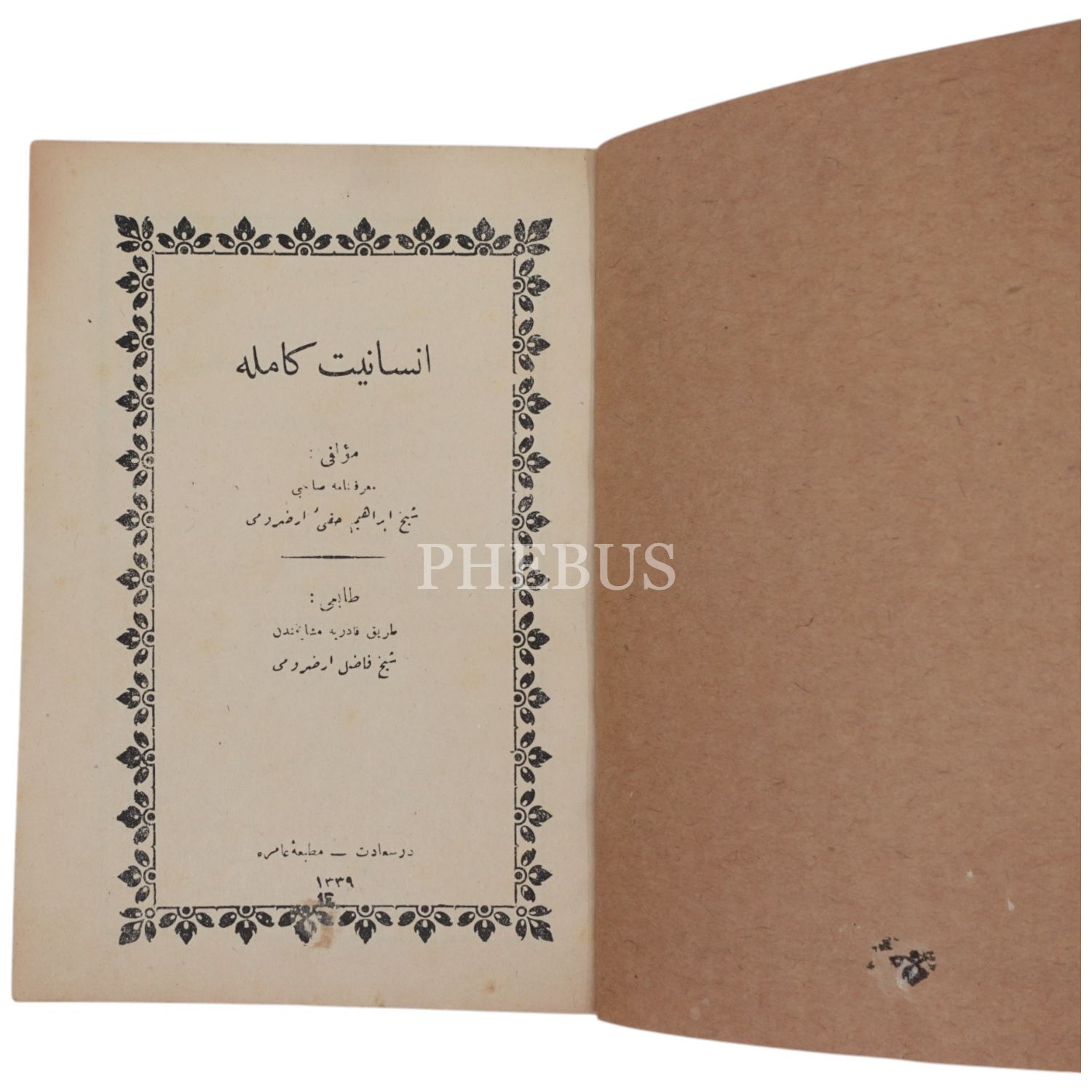 İNSANİYET-İ KAMİLE, Erzurumlu İbrahim Hakkı, 1339, Matbaa-i Amire, 30 sayfa, 14x20 cm...