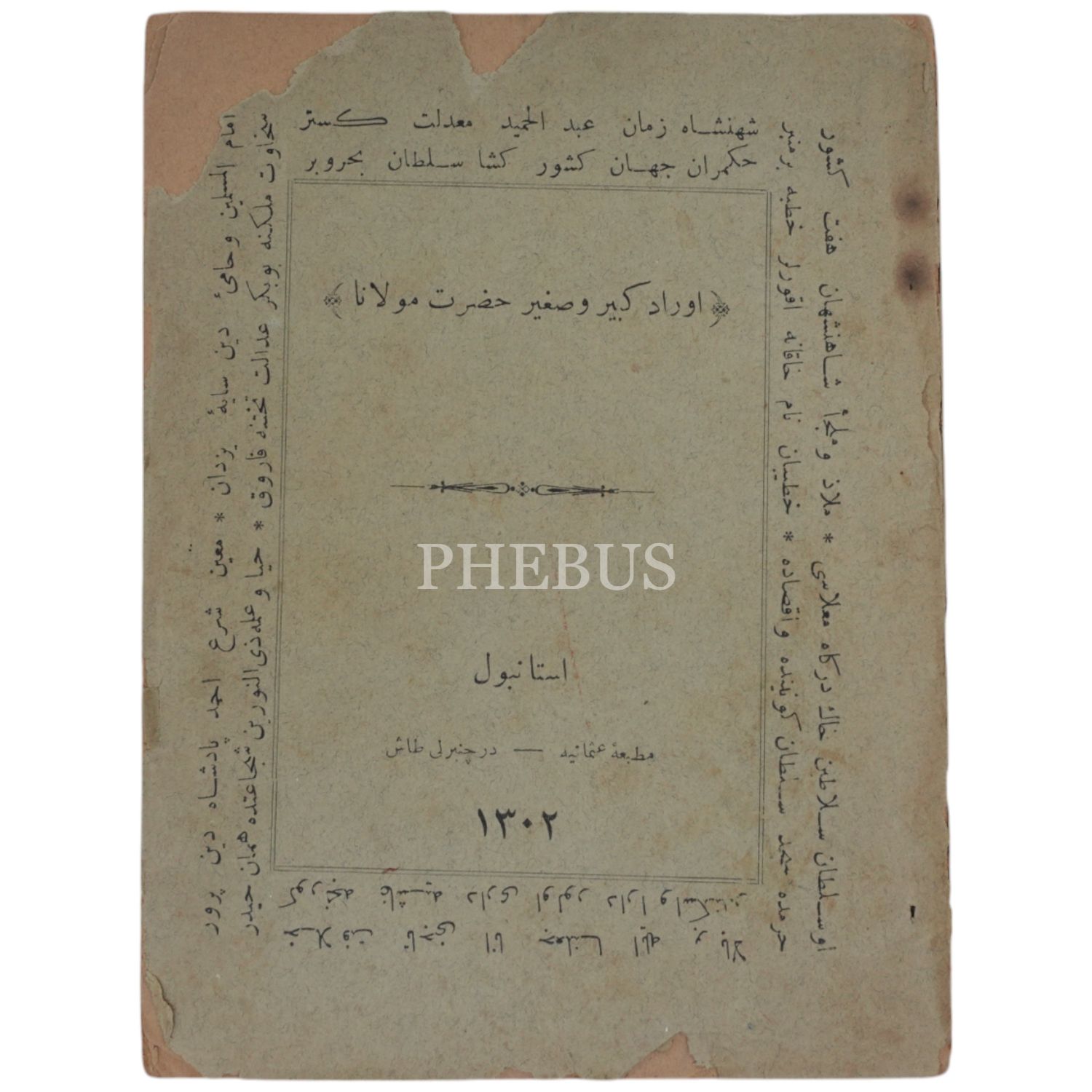 EVRAD-I KEBİR VE SAGİR HAZRETİ MEVLÂNA, 1302, Matbaa-i Osmaniyye, 55 sayfa, 12x16cm...