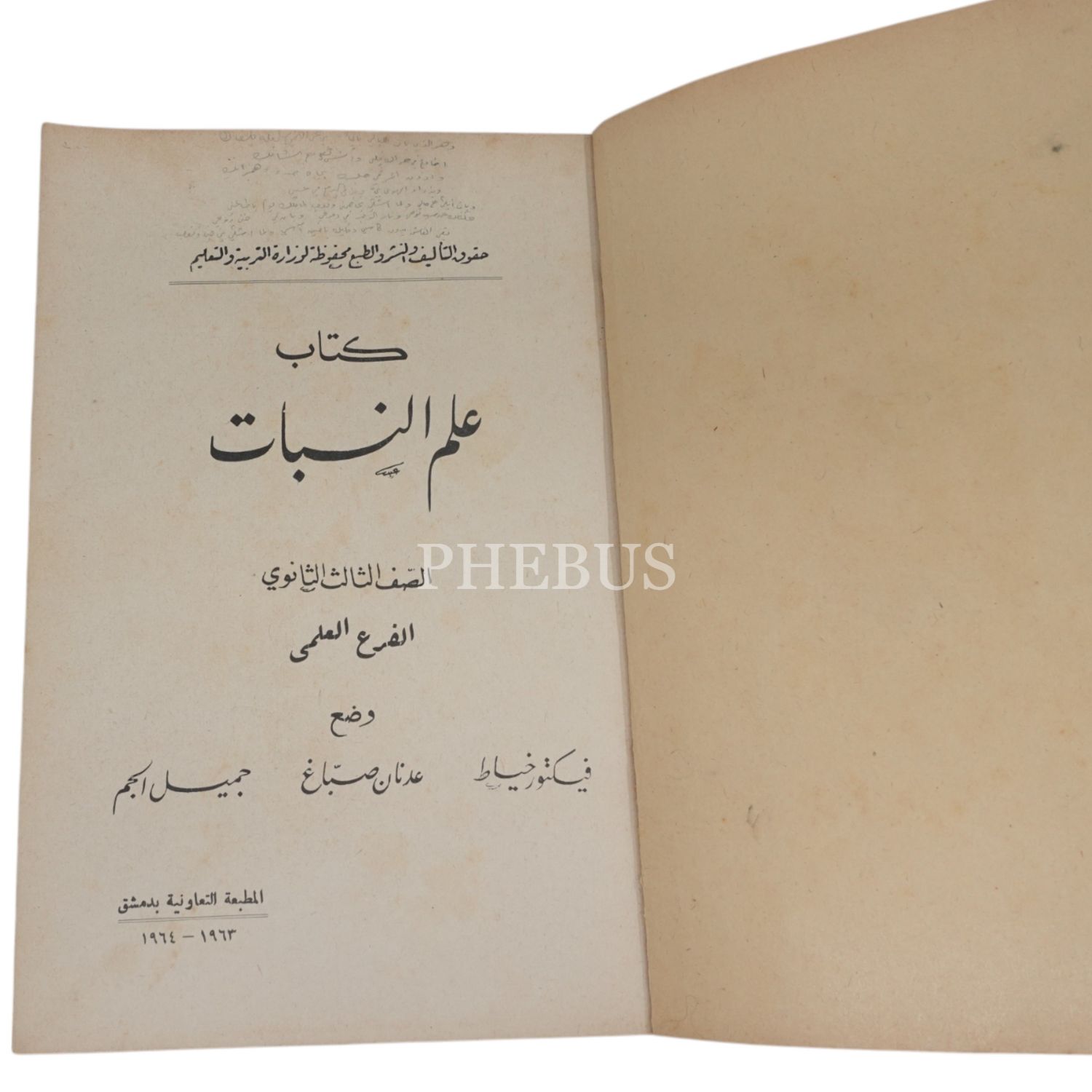 KİTAB İLM´İ NEBAT, Victor Hayat-Cemil El Cem-Adnan Sabbal, 1964, El-Matbaa-tü´t Teaviniyye, 289 sayfa, 17x24