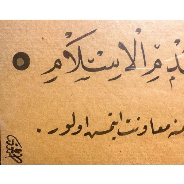 Besmele muhakkak, hadis-i şerif nesih, "tercümesi" ibaresi talik ve Türkçe tercümesi rika ile yazılmıştır.