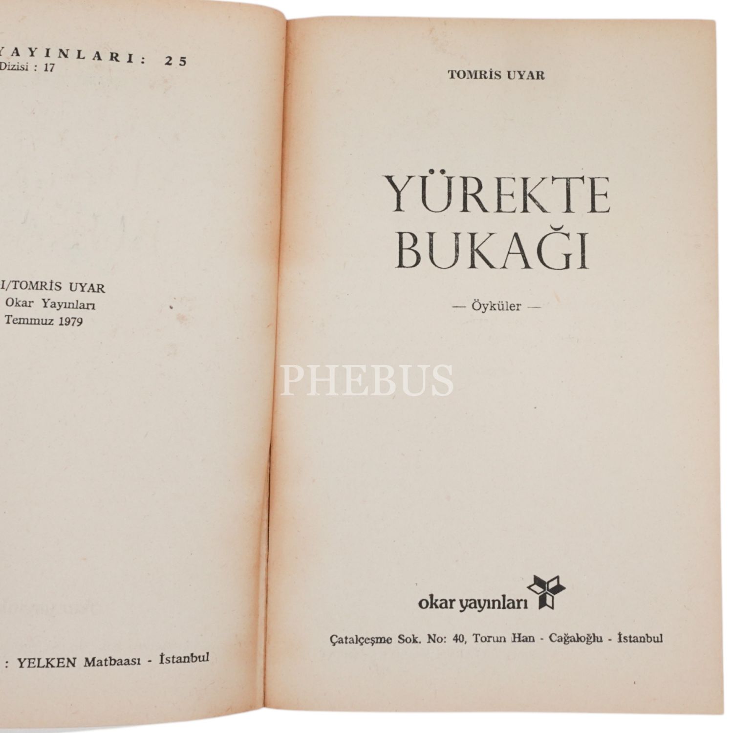 YÜREKTE BUKAĞI, Tomris Uyar, 1979, Okar Yayınları, 120 sayfa, 12x19cm...