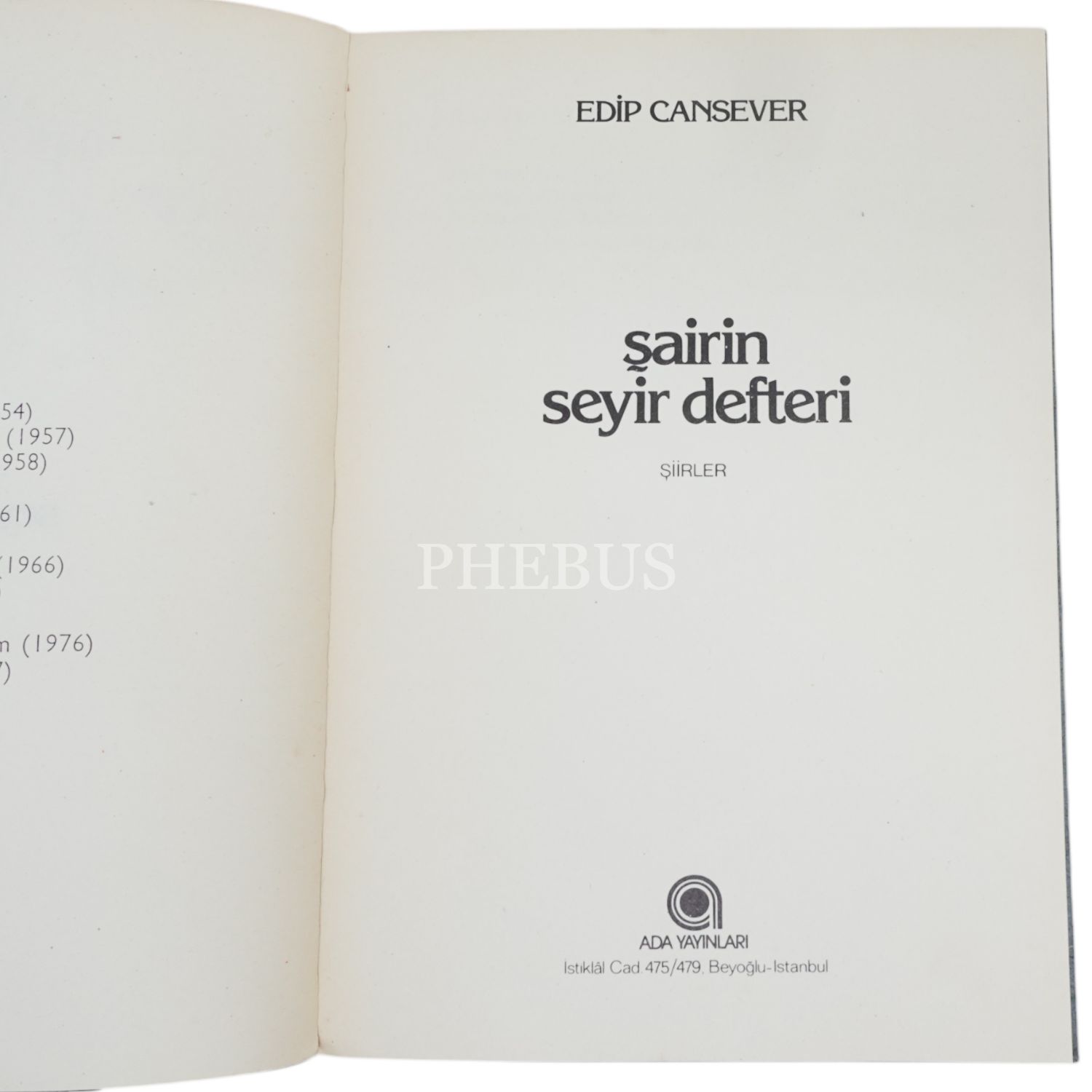 ŞAİRİN SEYİR DEFTERİ (ŞİİRLER), Edip Cansever, 1980, Ada Yayınları, 50 sayfa, 14x20cm...