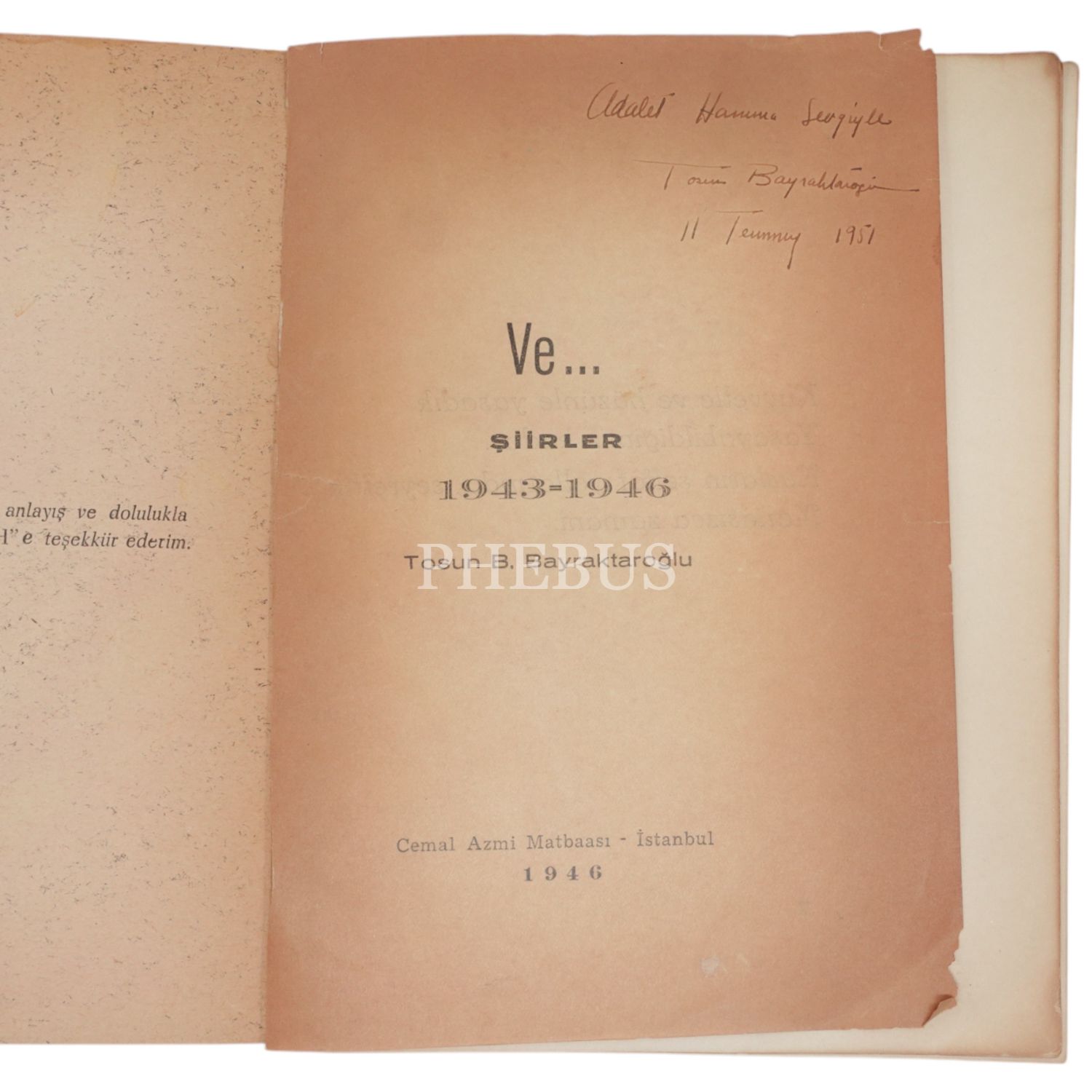 VE... ŞİİRLER (1943-1946), Tosun Bayraktaroğlu, 1946, Cemal Azmi Matbaası, 63 sayfa, 14x19cm...
