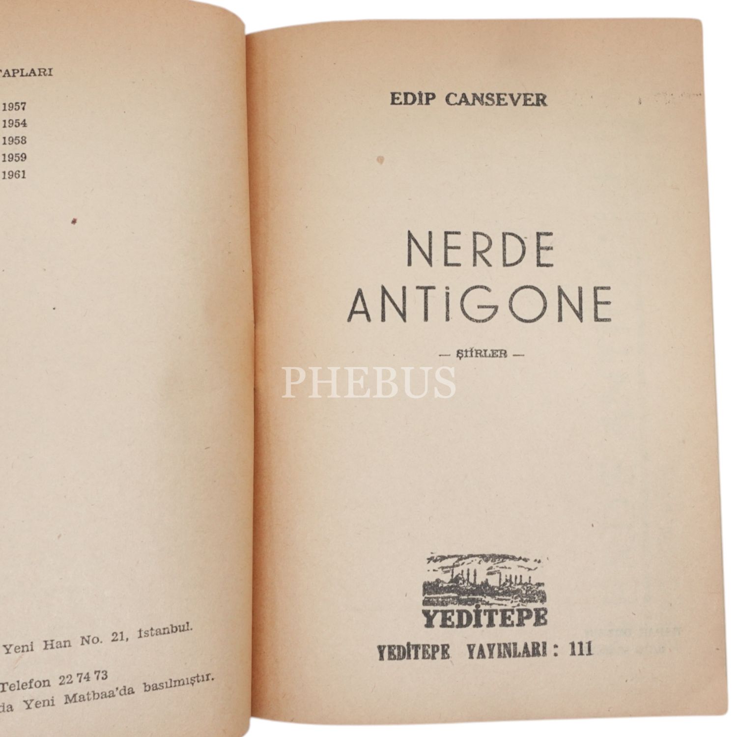 NERDE ANTİGONE, Edip Cansever, 1961, Yeditepe Yayınları, 44 sayfa, 14x20cm...