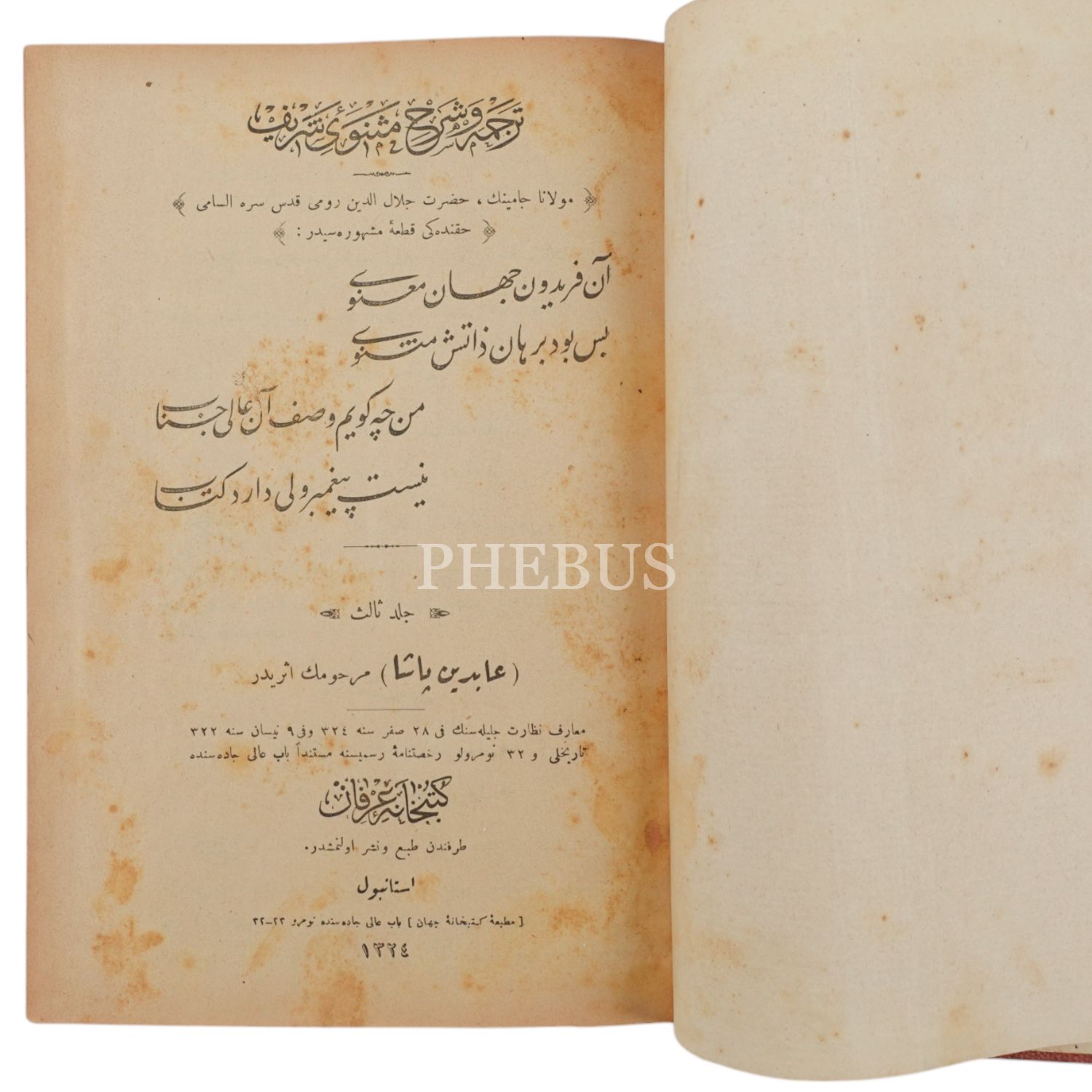 TERCÜME VE ŞERH-İ MESNEVÎ-İ ŞERİF (3. Cild), Mevlana çev. Abidin Paşa, 1324, Cihan Matbaası, 269 sayfa, 17x24cm...