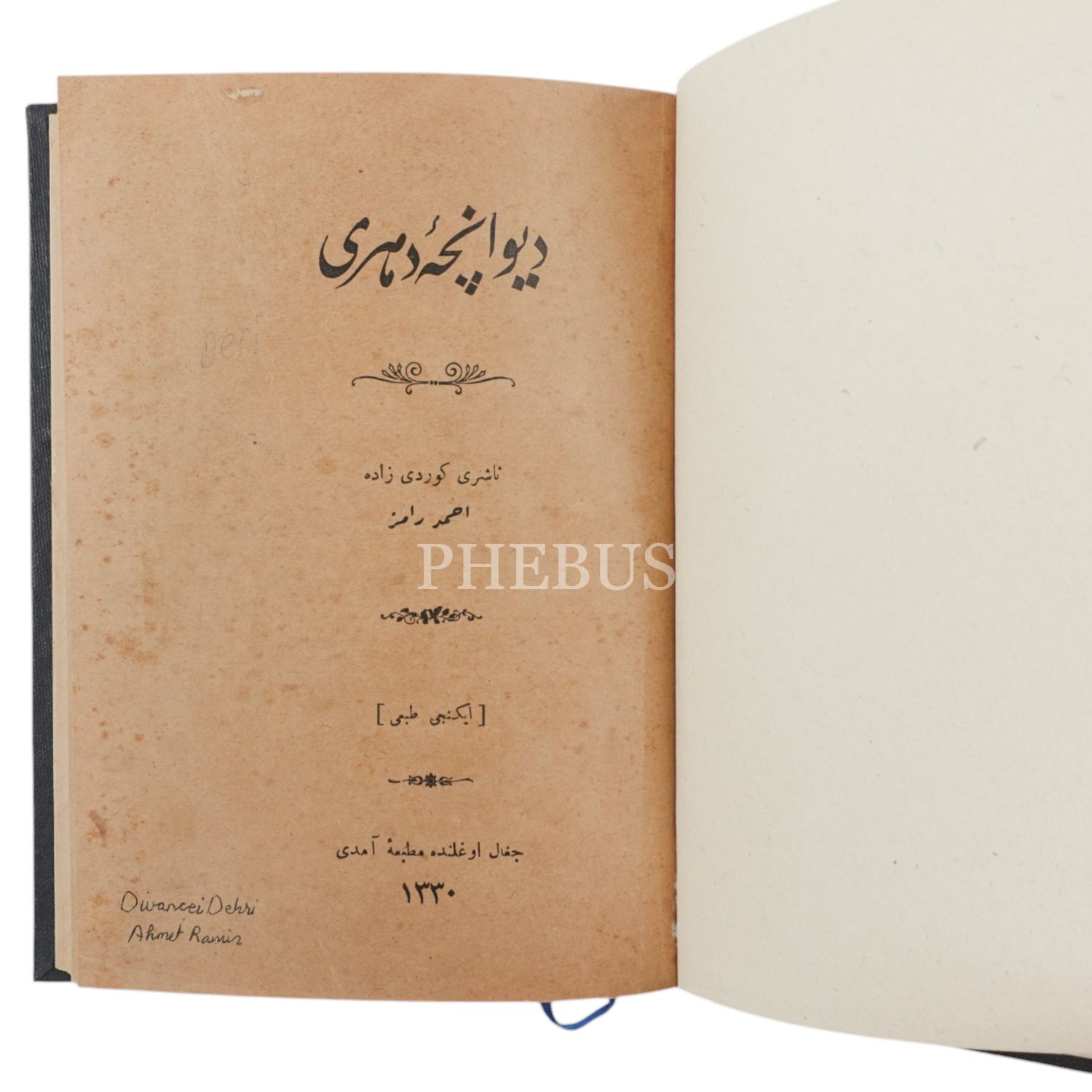 DİVANÇE-İ DEHRİ, Ahmed Ramiz, 1330, Matbbayı Âmedî, 160 sayfa, 15x20cm...