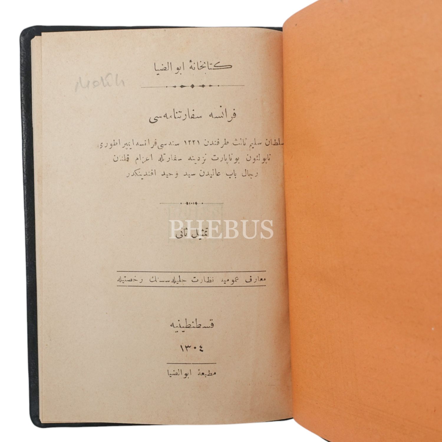 FRANSA SEFARETNAMESİ, 1304, Ebuzziya Matbaası, 118 sayfa, 11x15cm...
