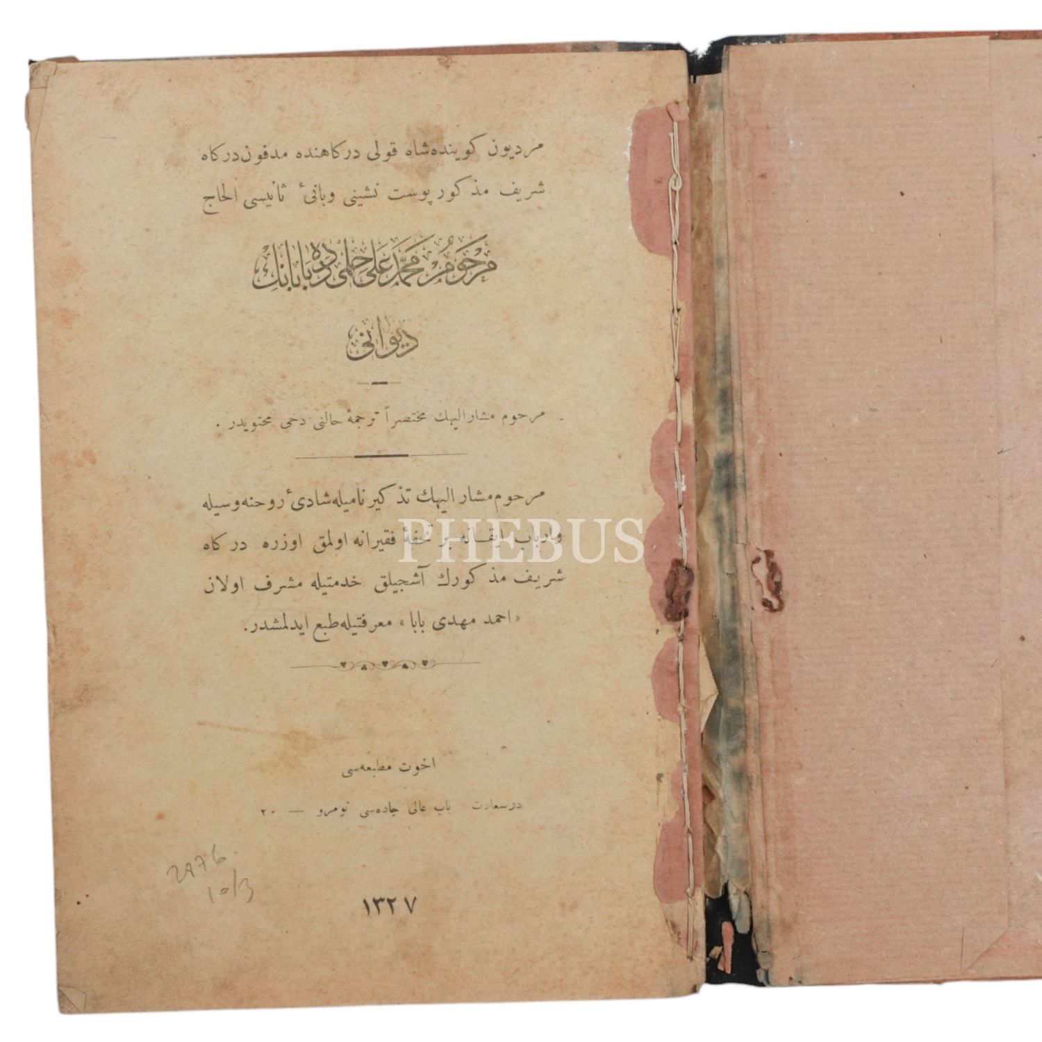 MERHUM MEHMED ALİ HİLMİ DEDE BABA´NIN DİVANI, 1327, Uhuvvet Matbaası, 128 sayfa, 23x15 cm...