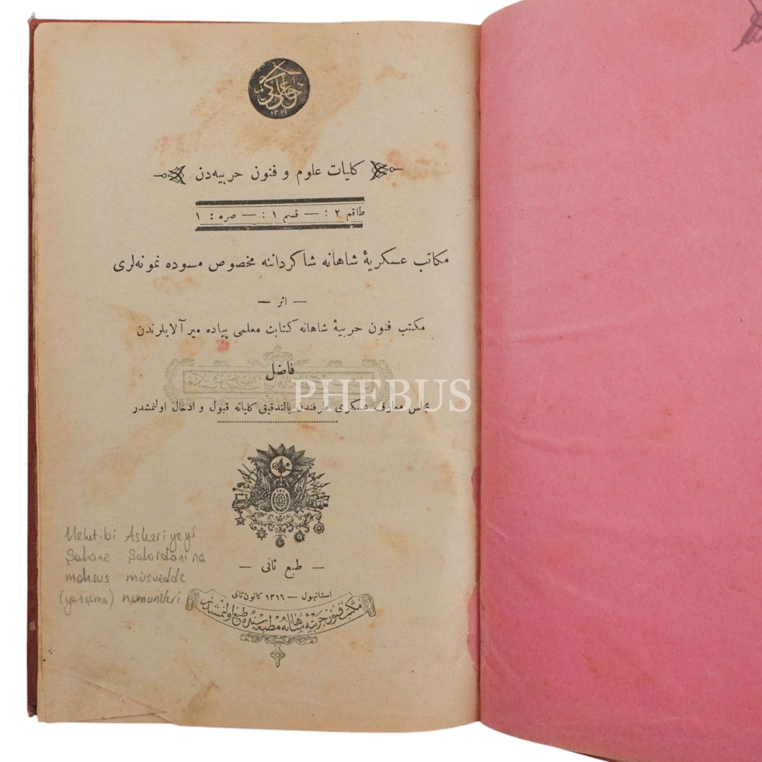MEKATİB-İ ASKERİYE-İ ŞÂHÂNE ŞAKİRDÂNINA MAHSUS MÜSVEDDE NUMUNELERİ, Fazıl Paşa, 1316, Mekteb-i Fünun-ı Harbiye-i Şahane Matbaası, 116 sayfa, 15x23cm...