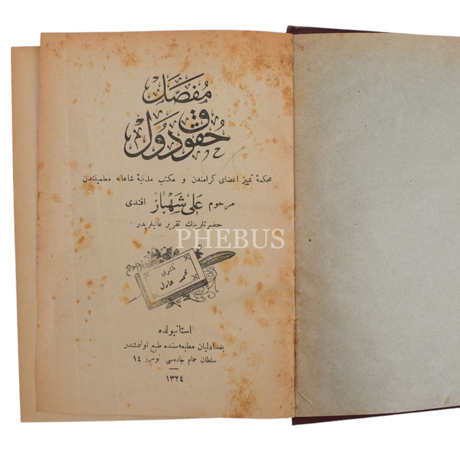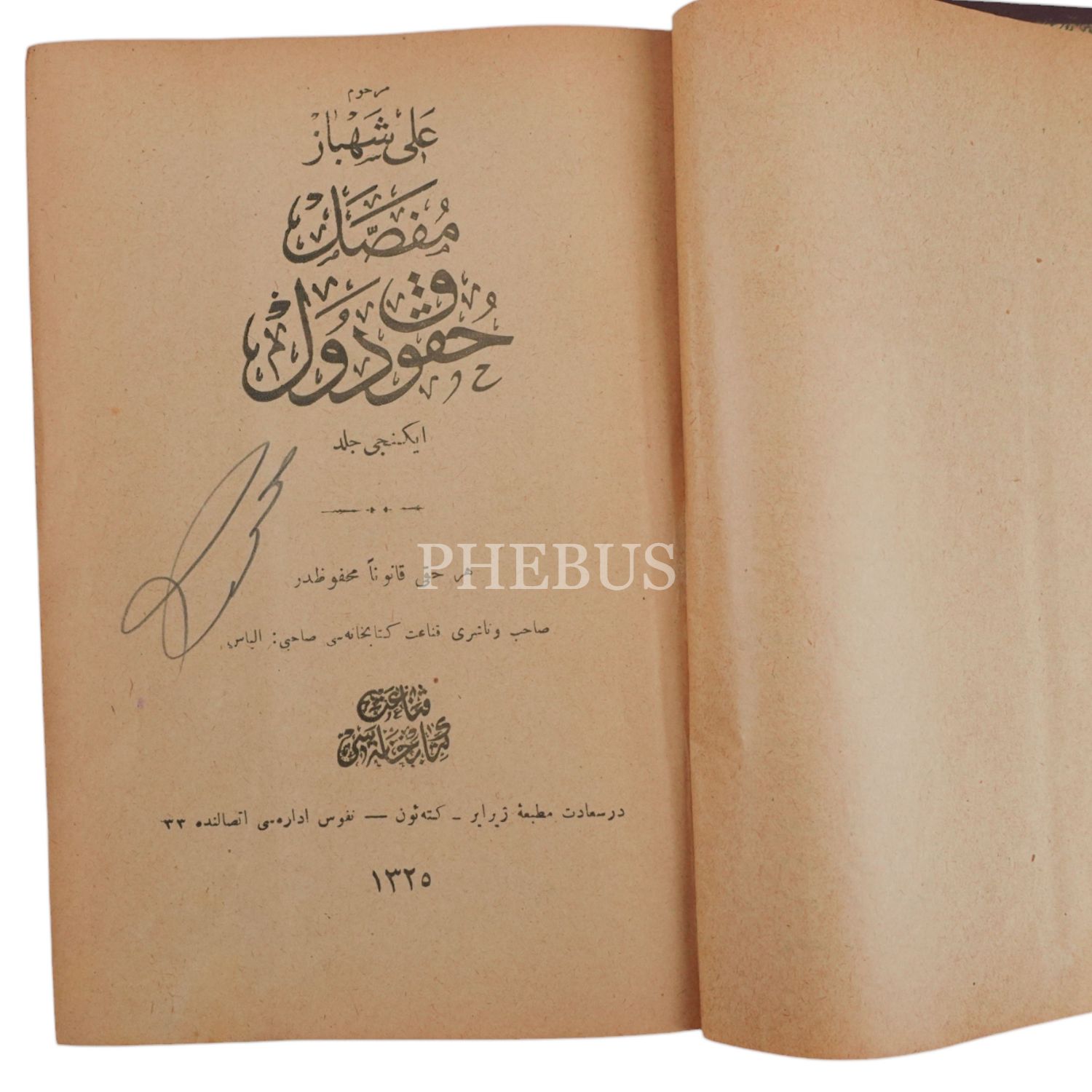 MUFASSAL HUKUK-U DÜVEL, Ali Şahbaz (1.-2.Ciltler), 1325, Dersaadet Matbaası,1174 sayfa, 14x20cm...
