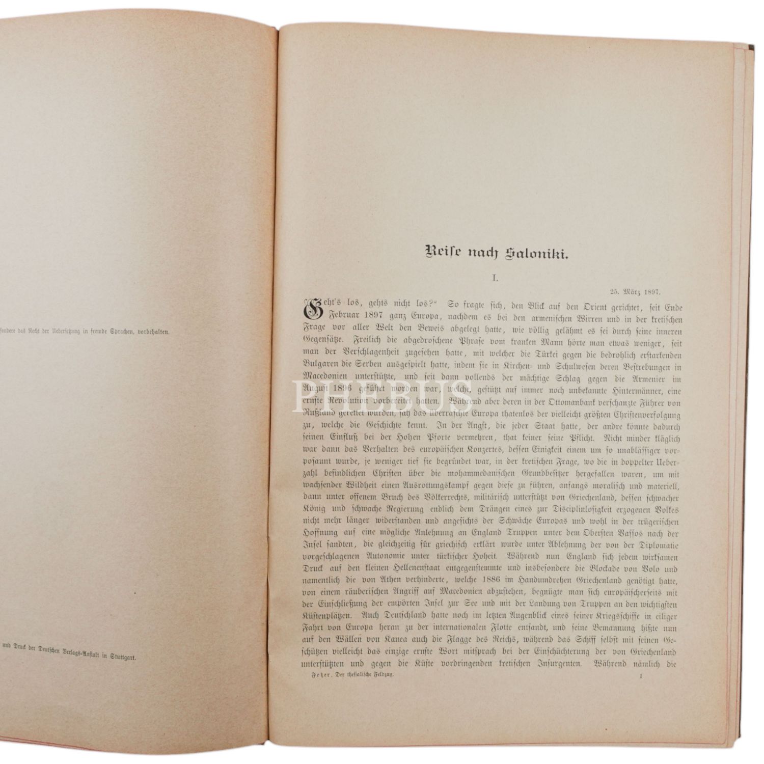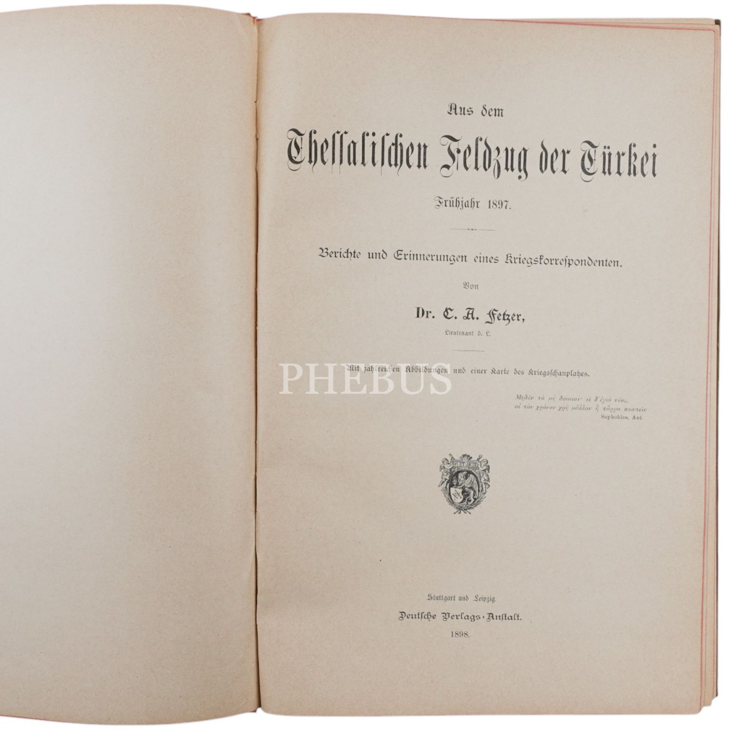 AUS DEM THESSALISCHEN FELDZUG DER TURKEI, C. A. Fetzer, 1898, Deutsche Verlag (Stuttgart), 171 sayfa, 20x29 cm...