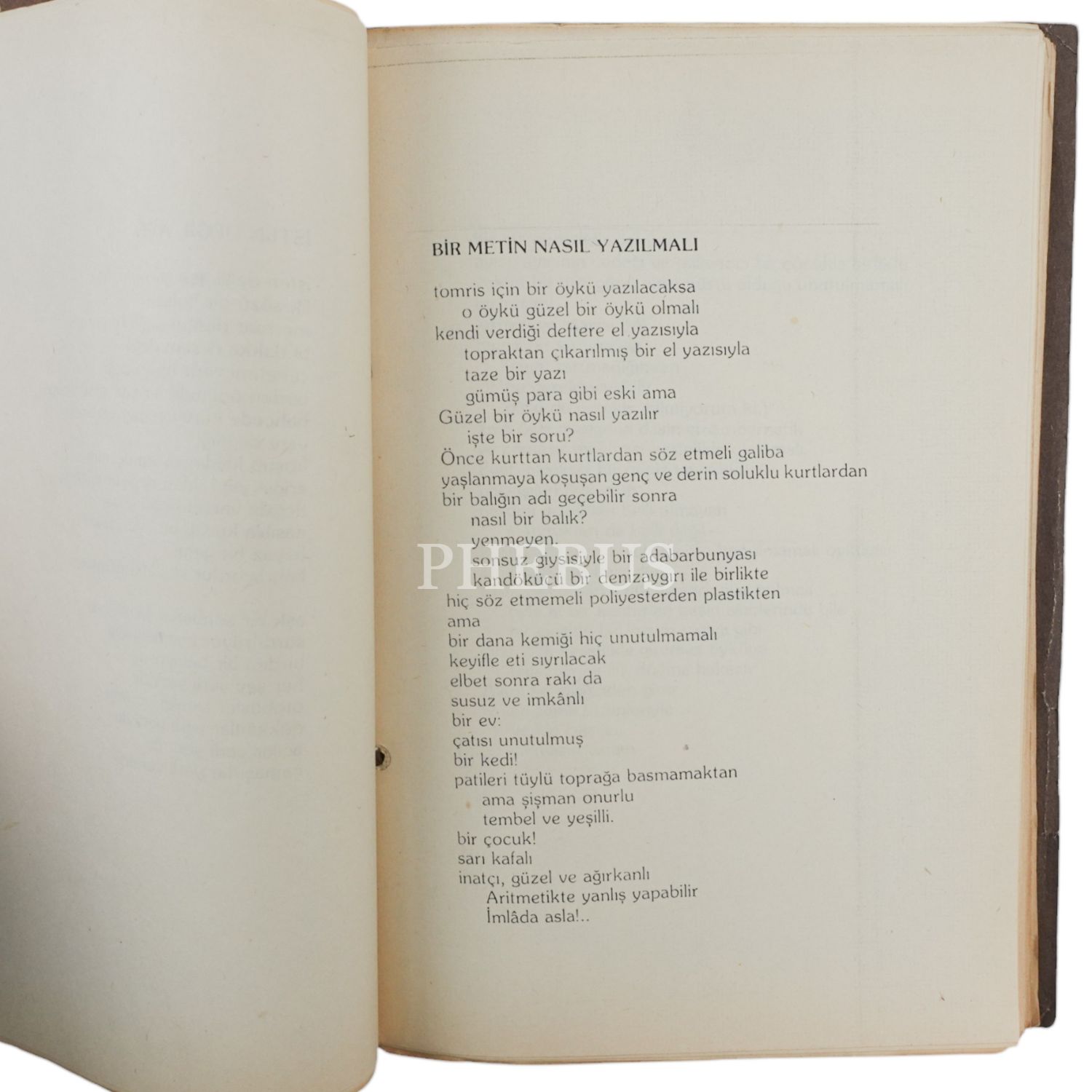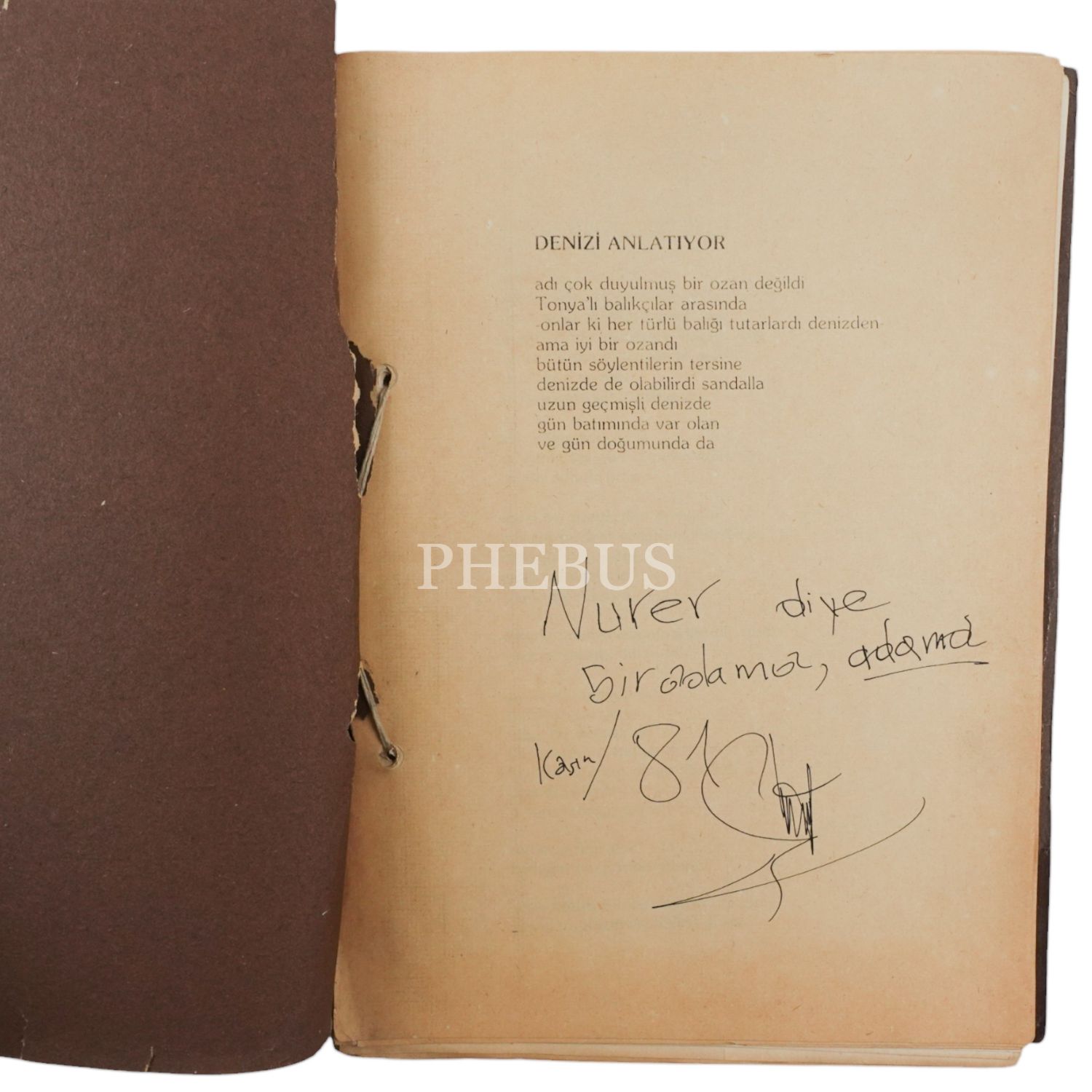 Turgut Uyar´ın "KAYAYI DELEN İNCİR" adlı eserinin; metni fotokopi yöntemiyle çoğaltılan, kapağı ise Turgut Uyar tarafından el ile hazırlanarak şair, yazar ve araştırmacı Nurer Uğurlu için ithaf edip imzaladığı nüshası, 148 sayfa, 16x12 cm...