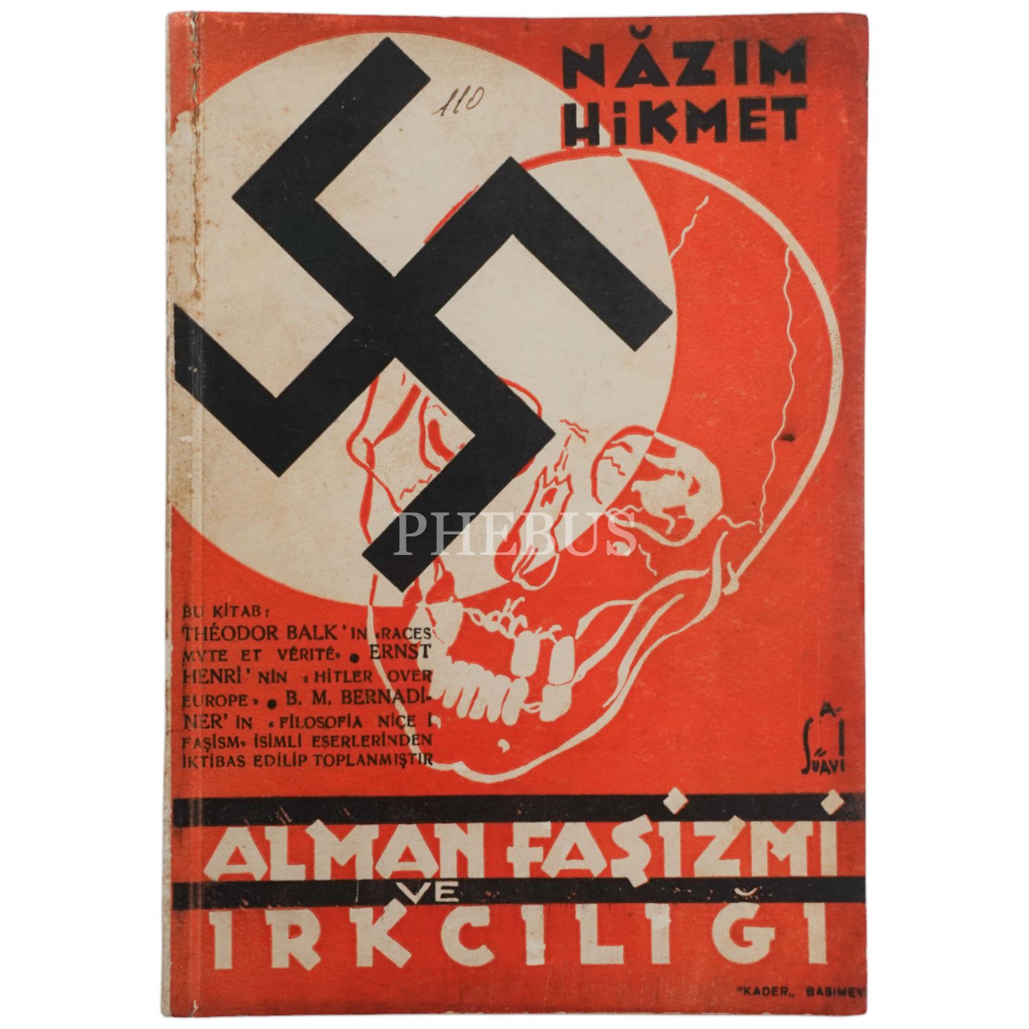 ALMAN FAŞİZMİ VE IRKÇILIĞI, Nazım Hikmet, 1936, Kader Basımevi, 96 sayfa, 14x20 cm...