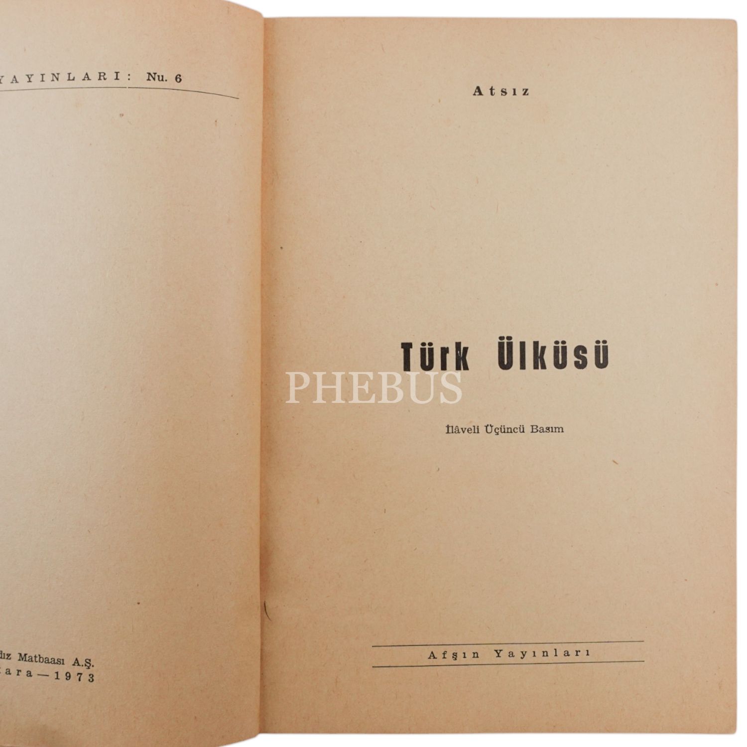 TÜRK ÜLKÜSÜ, (Hüseyin Nihal) Atsız, 1973, Afşın Yayınları, 120 sayfa, 14x20 cm...