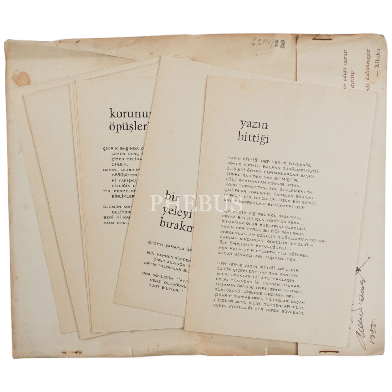 Ülkü Tamer´in, mahkeme kararıyla "kitap" olarak kabul edilmeyen, 13 şiirlik şiir dosyası… 12x18 cm boyutlarında, bir yüzüne şiir yazılmış 13 kart ve cepli dosya formunda bir kapak… İlgili kurumlara bir nüshası gönderilmediği için koğuşturmaya uğrayan bu eser, mahkeme kararıyla "kitap" sayılmadığı için beraat etmişti. Türk edebiyatının en ilginç tasarımlı ürünlerinden. "Nurer Uğurlu için sevgiyle" ithafıyla imzalanmıştır.