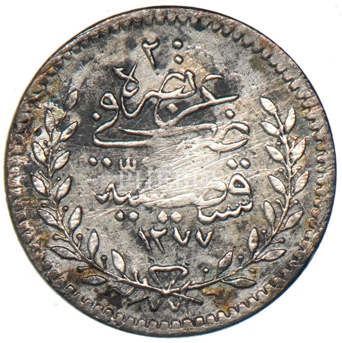 Abdülaziz 20 para 1277/2 Kostantiniye gümüş