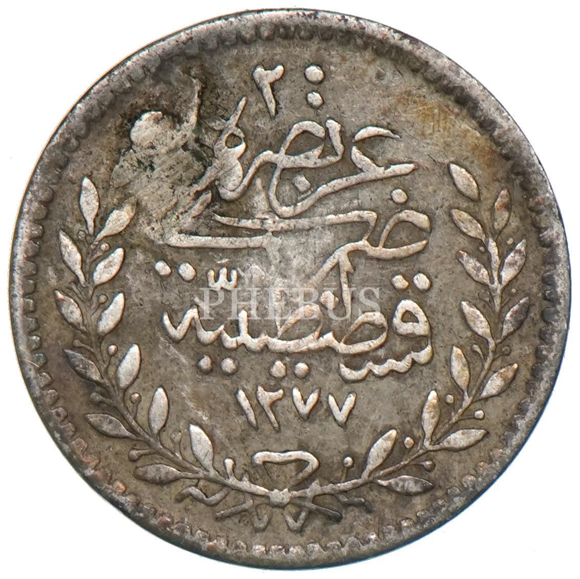 Abdülaziz 20 para 1277/7 Kostantiniye gümüş