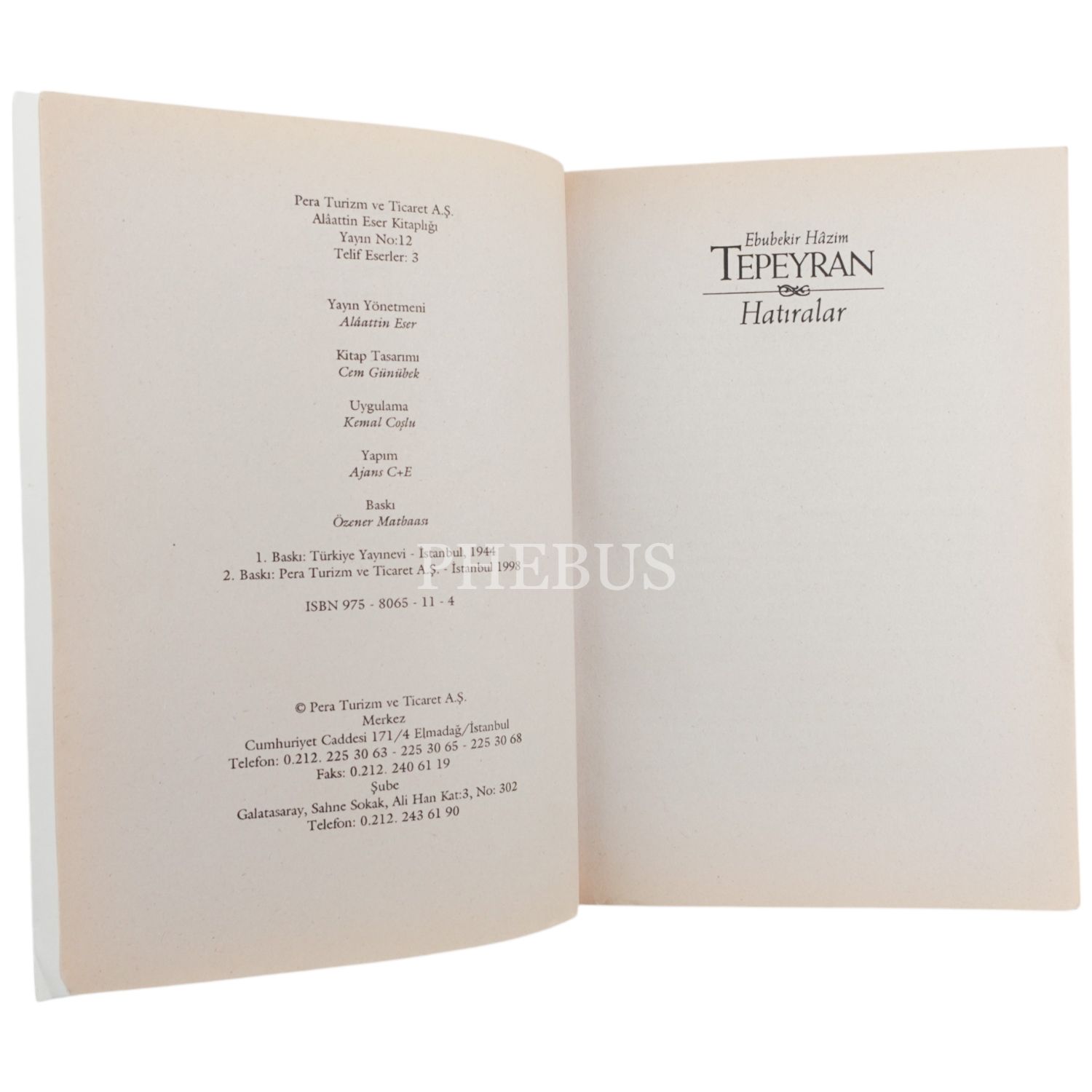 HATIRALAR, Ebubekir Hâzim Tepeyran, (yayına hazırlayan: Faruk Ilıkan), 1998, Pera Turizm ve Ticaret A.Ş., 601 sayfa, 14x20 cm...