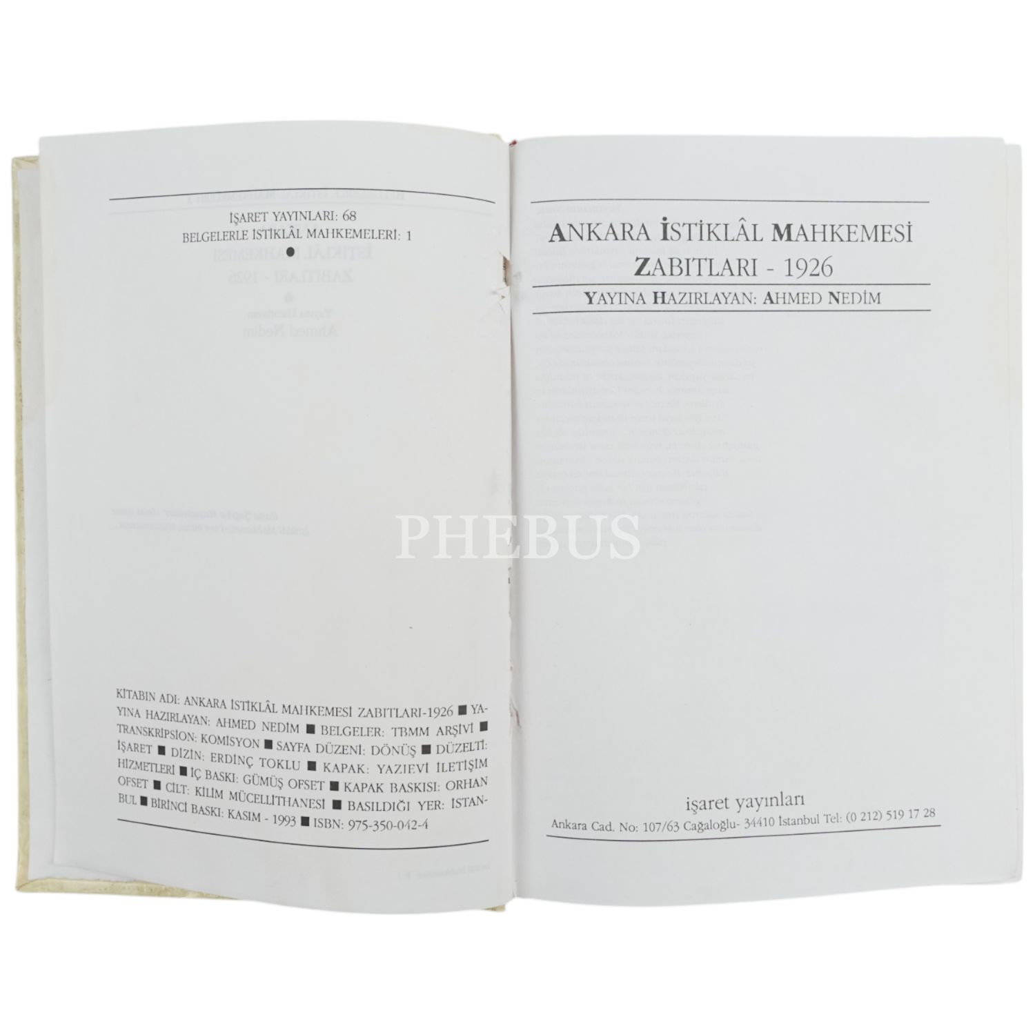 ANKARA İSTİKLÂL MAHKEMESİ ZABITLARI (1926), (hazırlayan: Ahmed Nedim), 1993, İşaret Yayınları, 391 sayfa + zabıtların orijinal görselleri, 18x24 cm...
