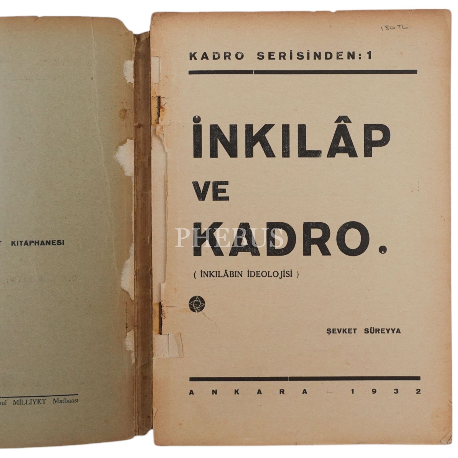 İNKILÂP VE KADRO (İnkılâbın İdeolojisi), Şevket Süreyya, 1932, Milliyet Matbaası, 173 sayfa, 17x24 cm...