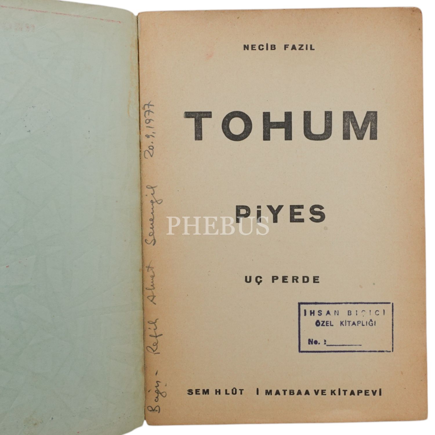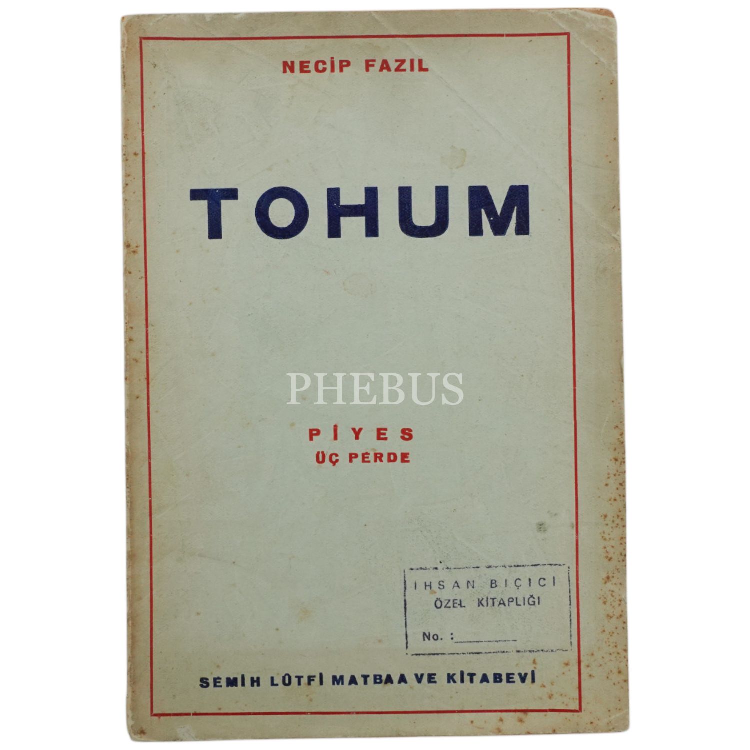 TOHUM, Necip Fazıl, 1935, Semih Lütfi Matbaa ve Kitabevi, 88 sayfa...