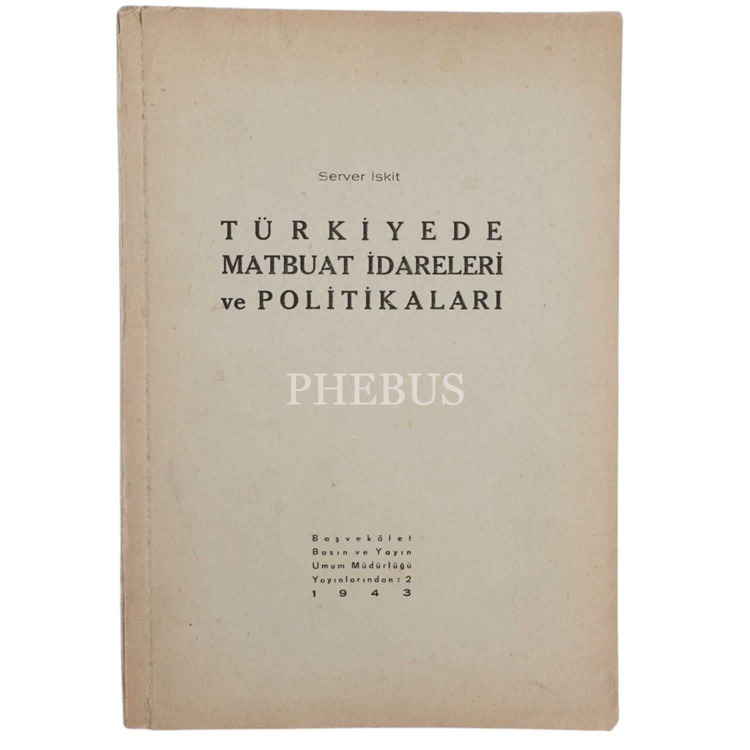 TÜRKİYE´DE MATBUAT İDARELERİ VE POLİTİKALARI, Server İskit, 1943, Başvekalet Basın ve Yayın Umum Müdürlüğü Yayınları, 391 sayfa, 17x24 cm...