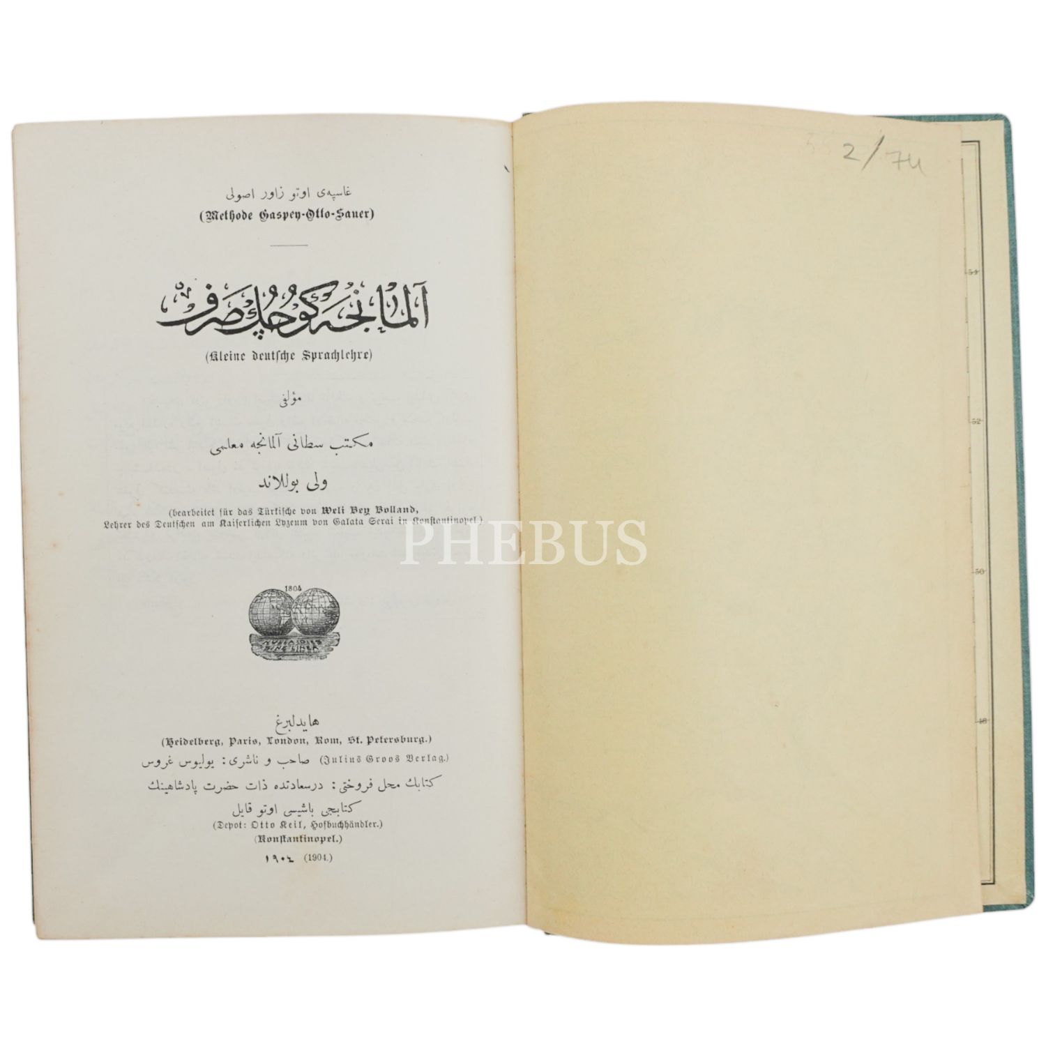 ALMANCA KÜÇÜK SARF, Veli Boland, 1904, Zat-ı Hazret-i Padişahi´nin Kitapçı Başısı Otto Keil, 238 sayfa, 20x13 cm...